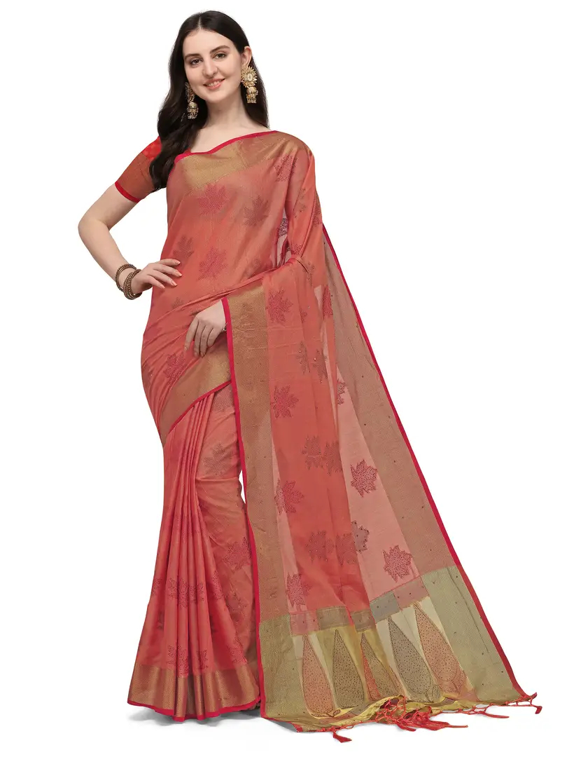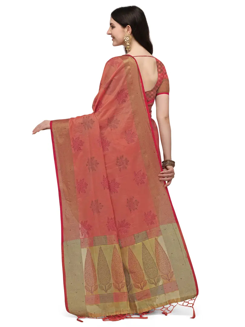 Party Wear Peach Colour Banarasi Silk Embelished Work Festival Saree