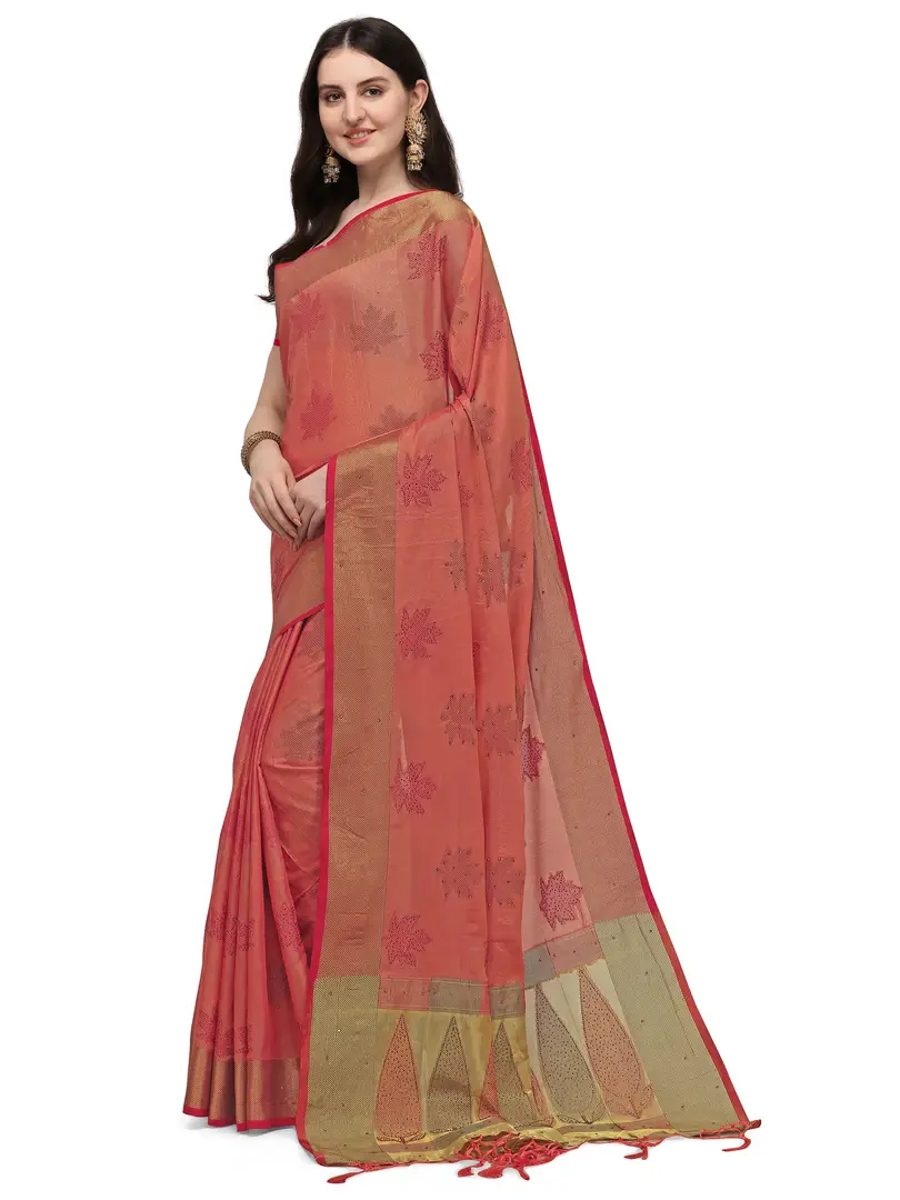 Party Wear Peach Colour Banarasi Silk Embelished Work Festival Saree