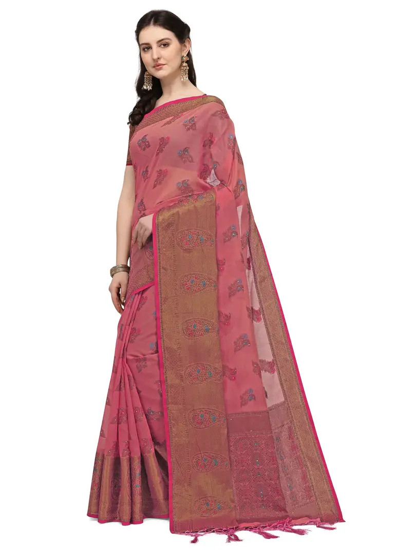 Party Wear Pink Colour Banarasi Silk Madhubani Work Festival Saree