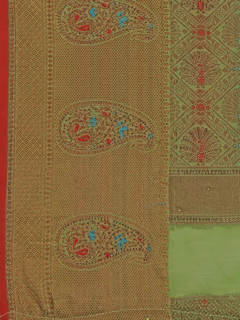 Party Wear Pista Colour Banarasi Silk Madhubani Work Festival Saree