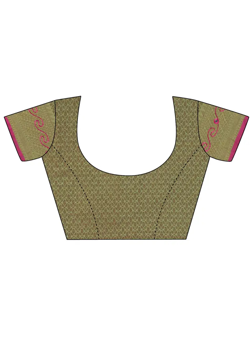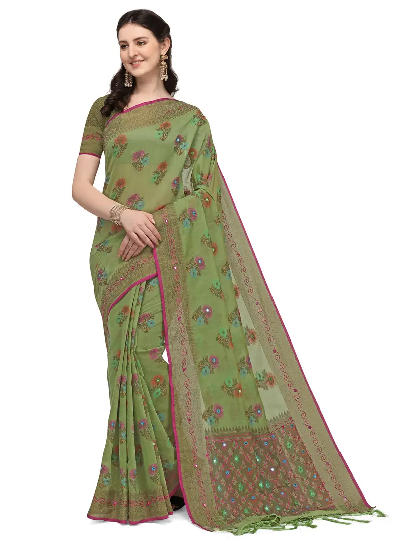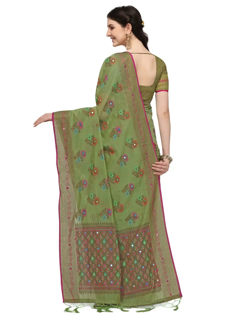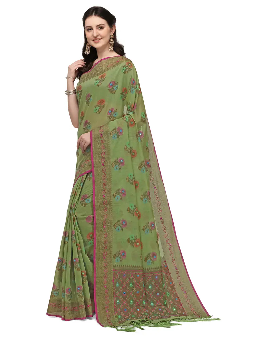 Party Wear Pista Colour Woven Silk Embelished Work Festival Saree