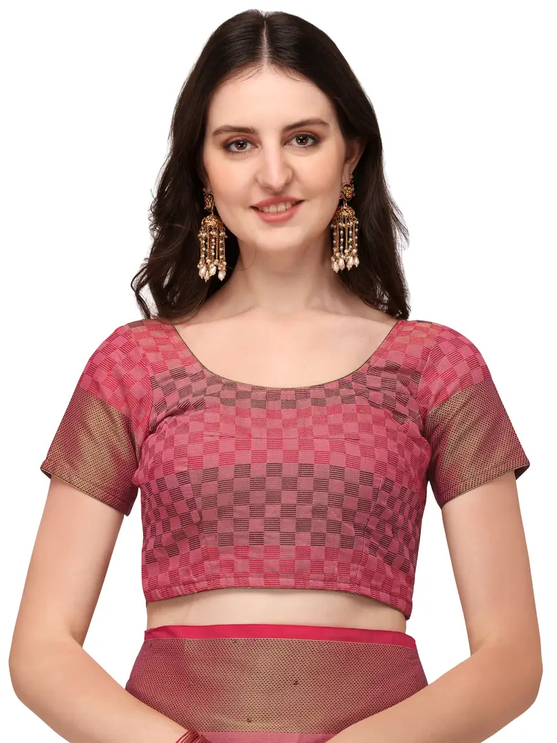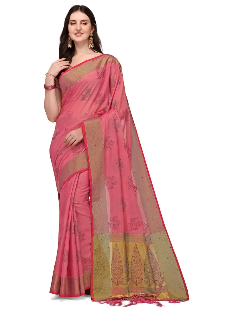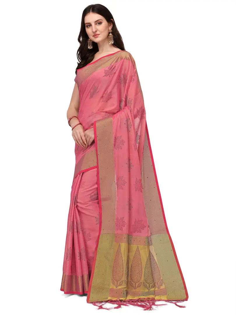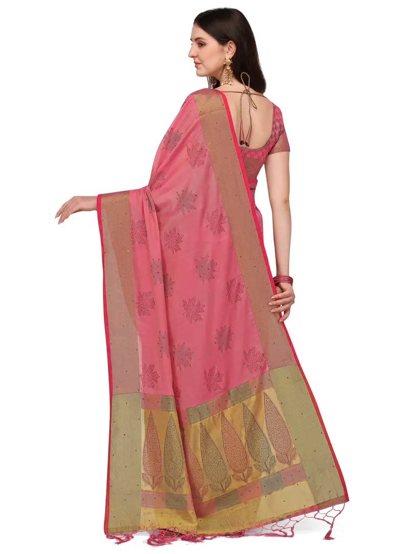 Party Wear Rose Colour Banarasi Silk Embelished Work Festival Saree