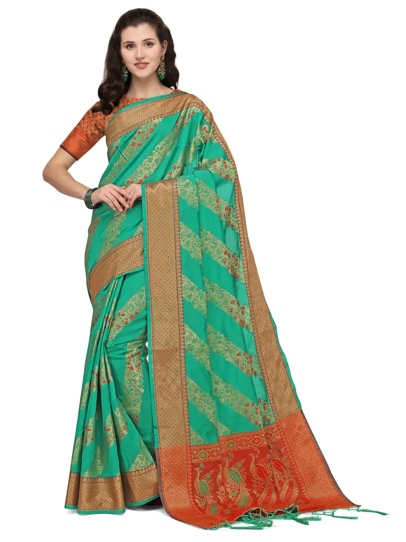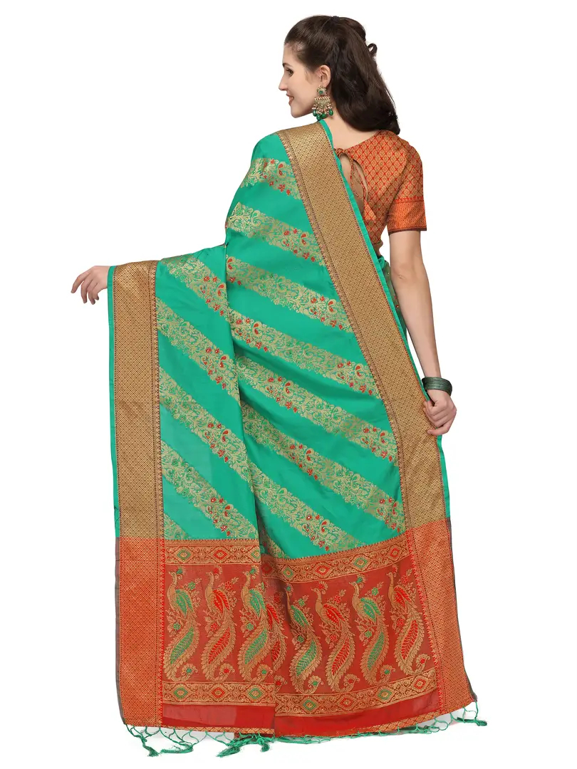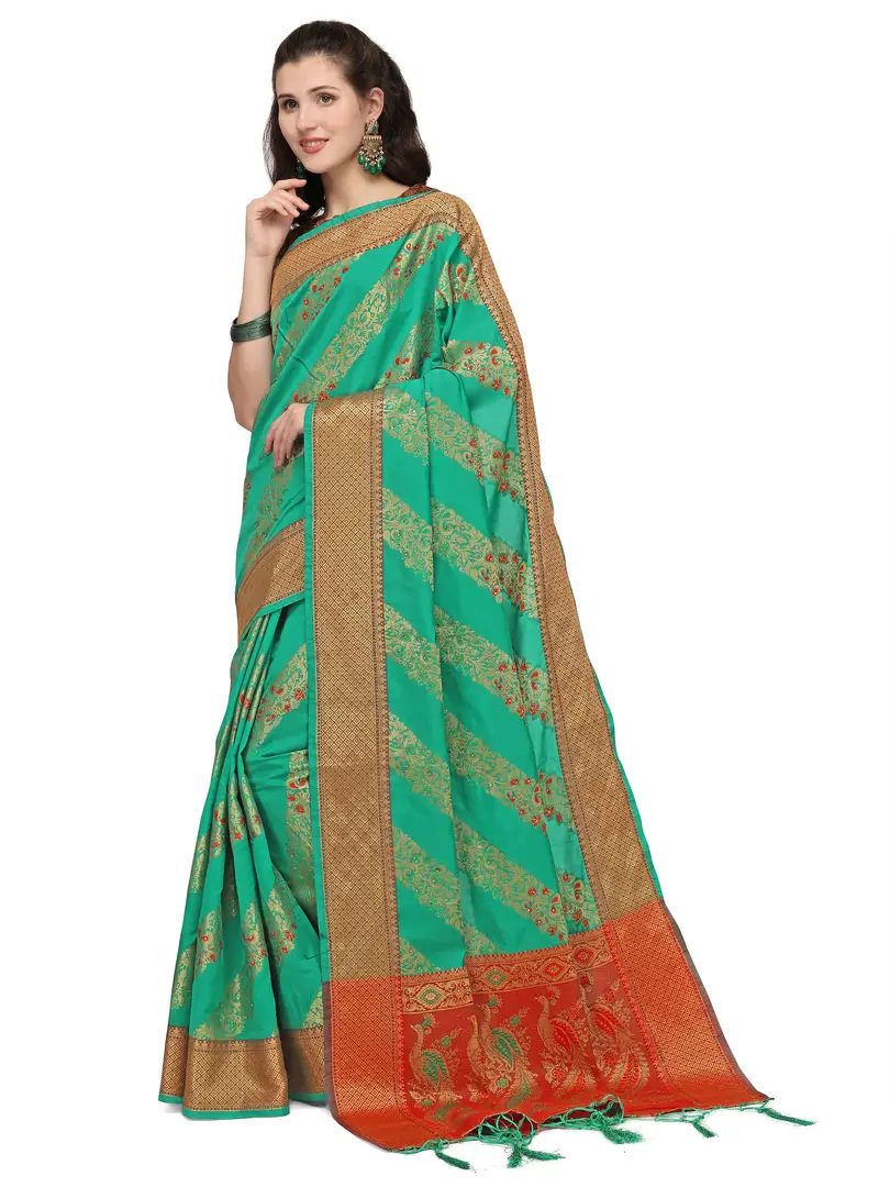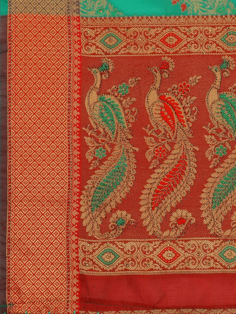 Party Wear Sea Green Colour Banarasi Silk Embelished Work Festival Saree