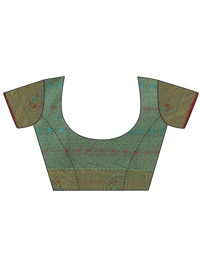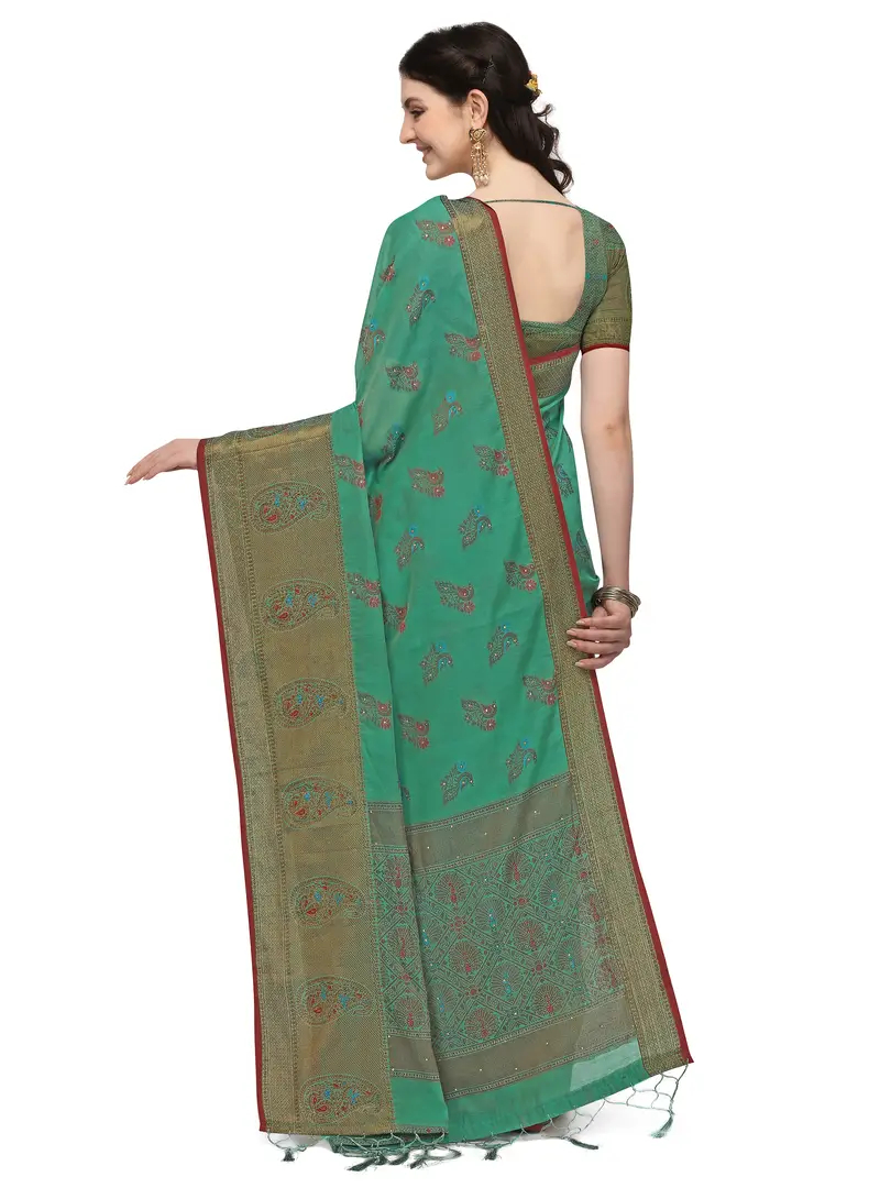 Party Wear Teal Colour Banarasi Silk Madhubani Work Festival Saree