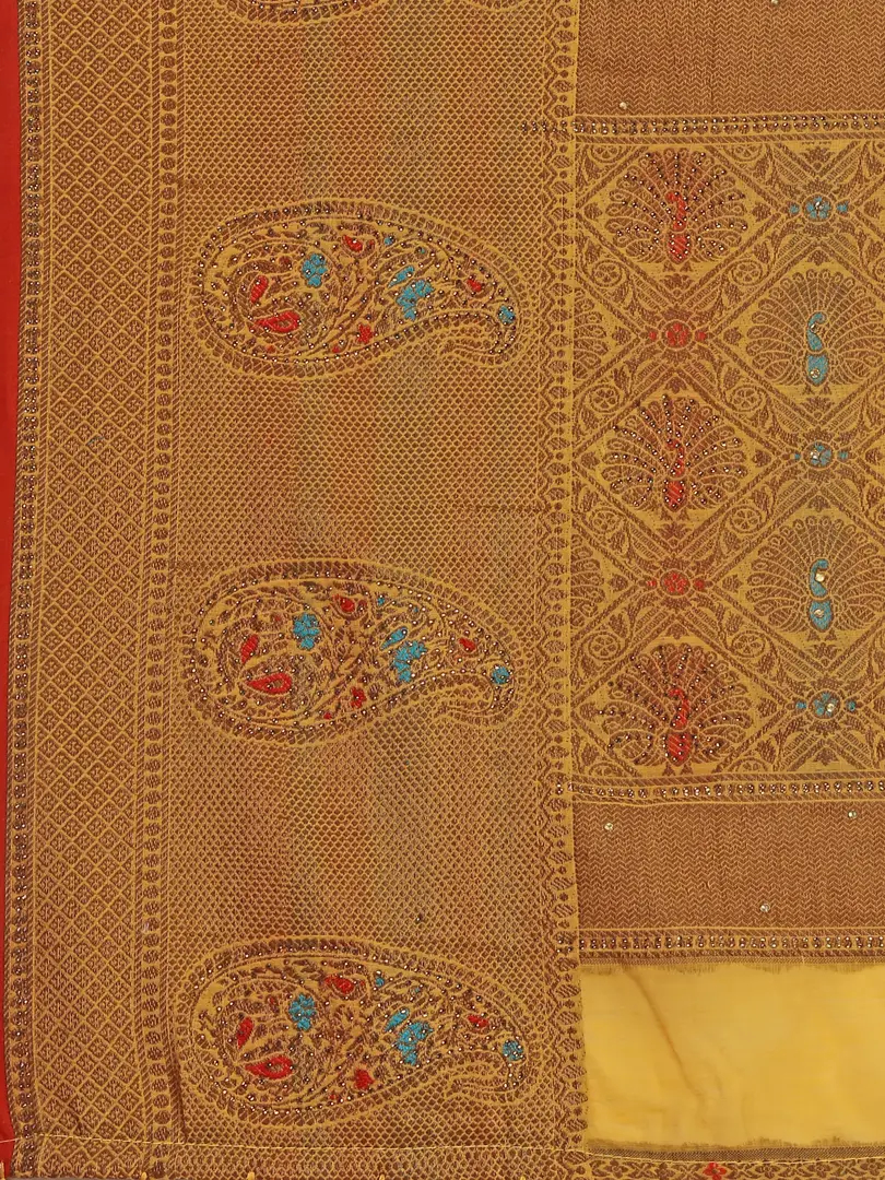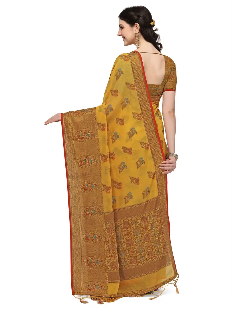 Party Wear Yellow Colour Banarasi Silk Madhubani Work Festival Saree