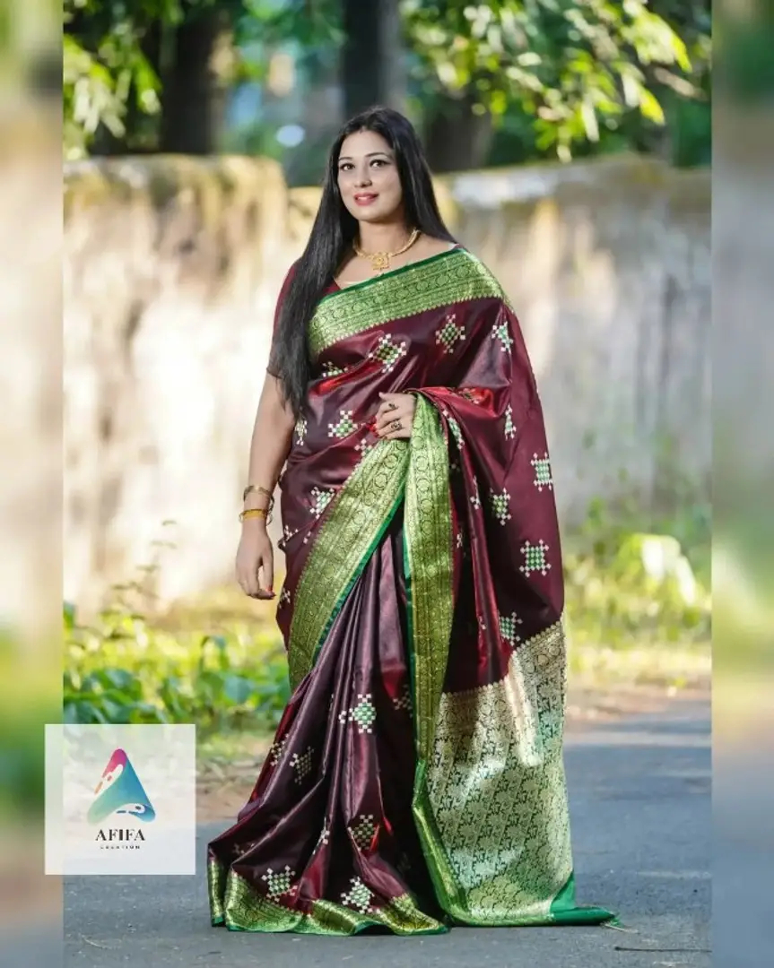 Sambhalpuri Satin Silk Resham Embroidery Saree with Blouse Piece