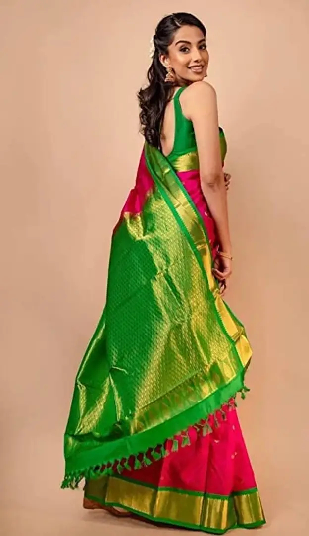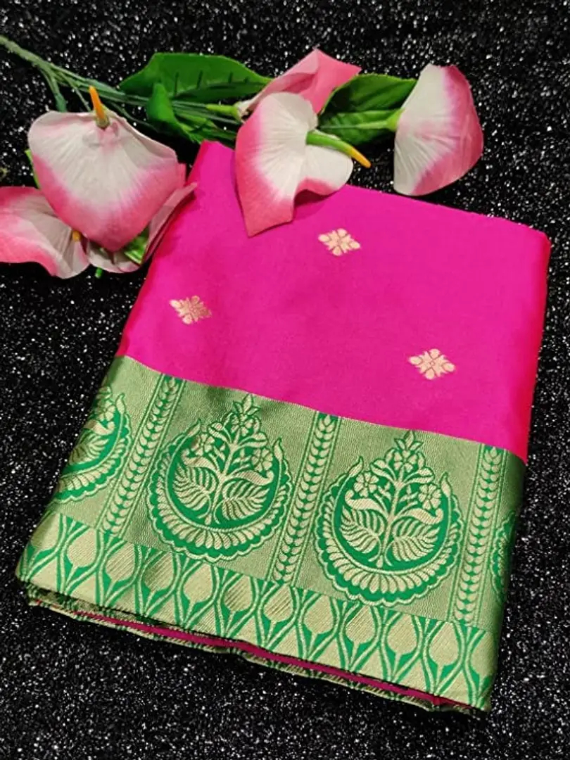 bull; BLOUSE : RUNNING BLOUSEbull; SAREE CUT : 5.40bull; BLOUSE CUT : 0.80bull; FABRIC : KANJEEVARAM/ART SILKArt silk saree for women is suitable for all occasions whether it is a family function or a wedding you can never go wrong with this stylish saree for women. The draping options make it easy for you to come up with new styles as per your mood and change them conveniently this wedding party sarees for women can increase your self-confidence and help you appreciate different styles.