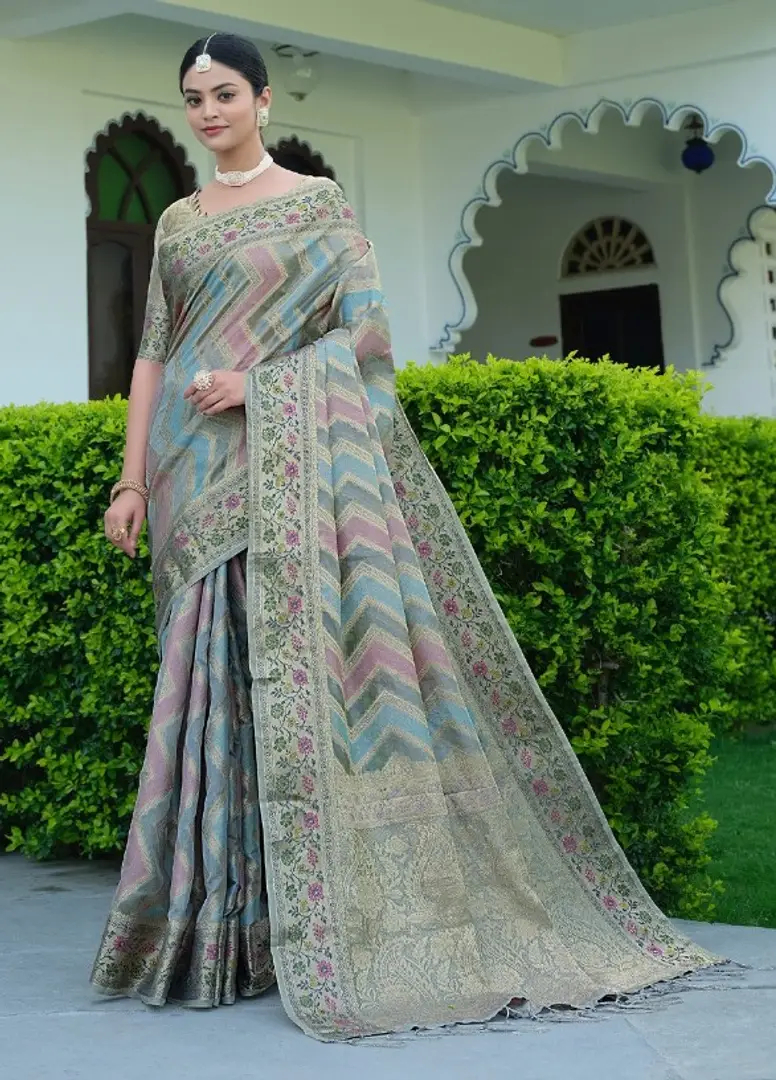 Soft Organza Saree With Meena Work All Over With Fancy Jacquard Border Of Pure Jari Work.