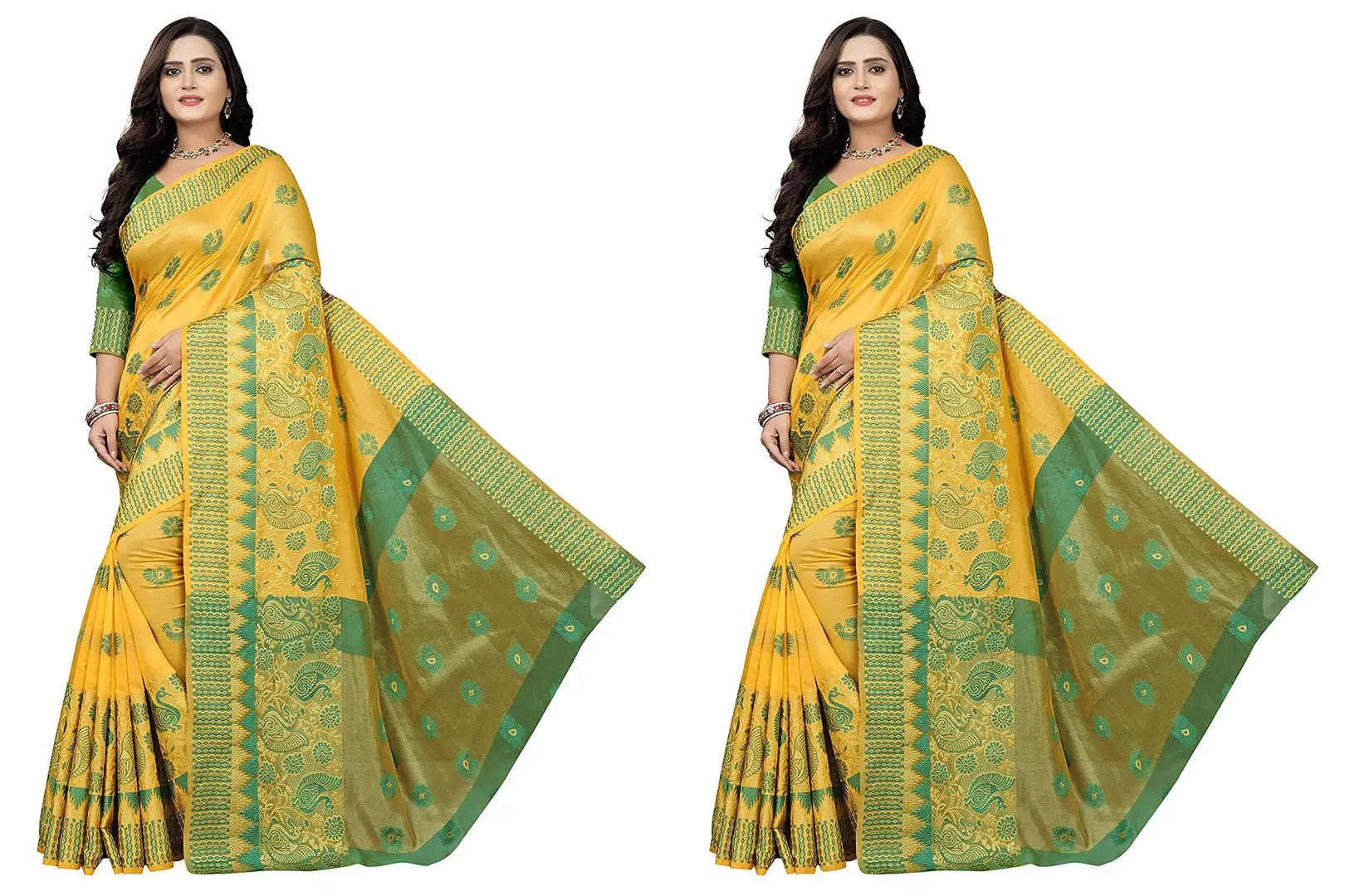 Women Banarasi Cotton Silk Saree Pack Of 2