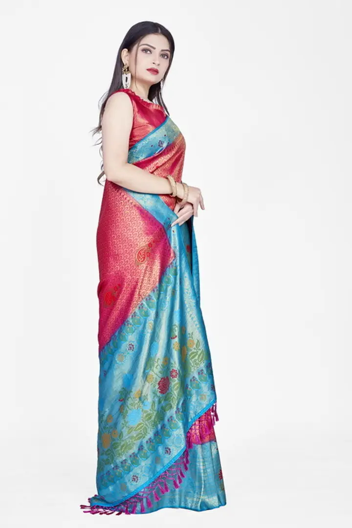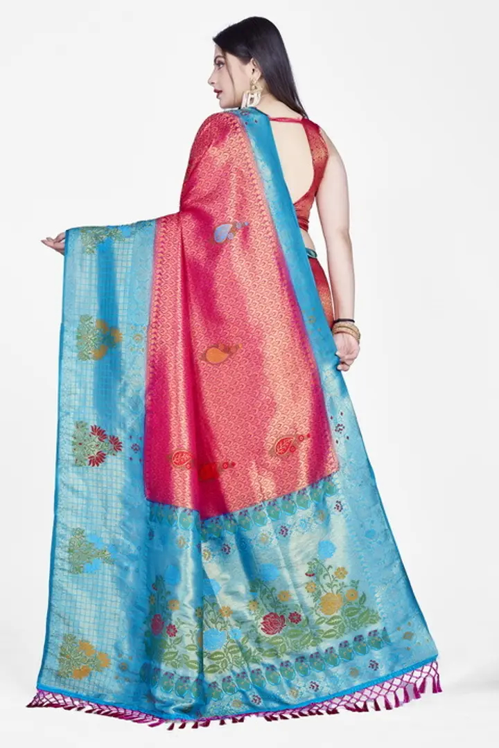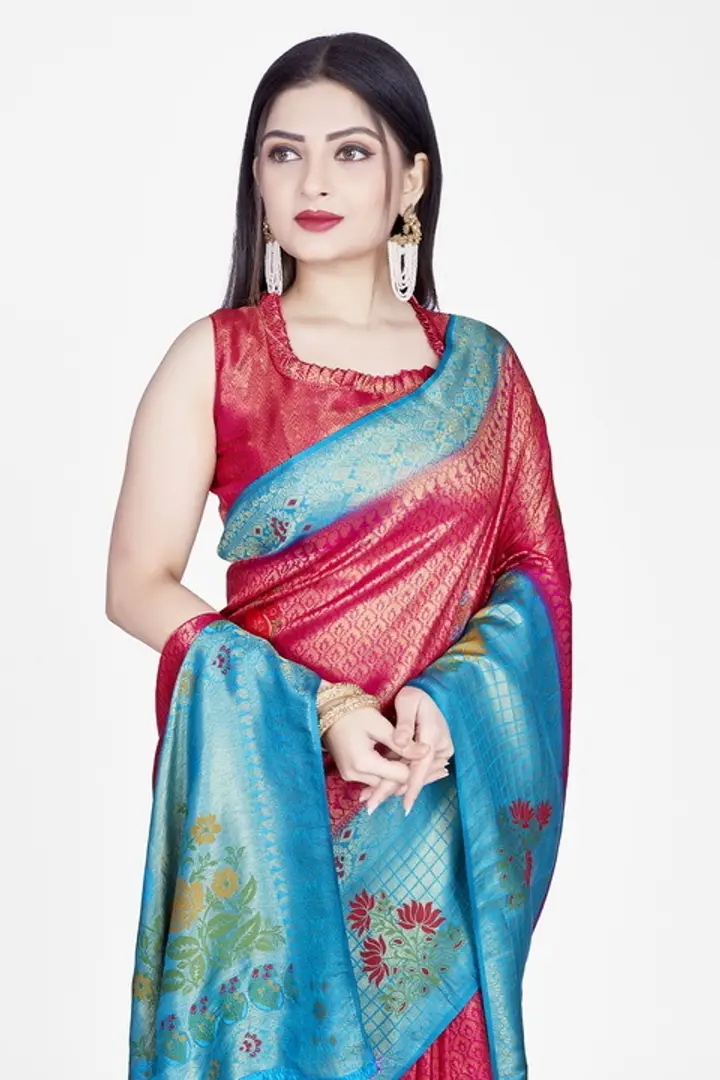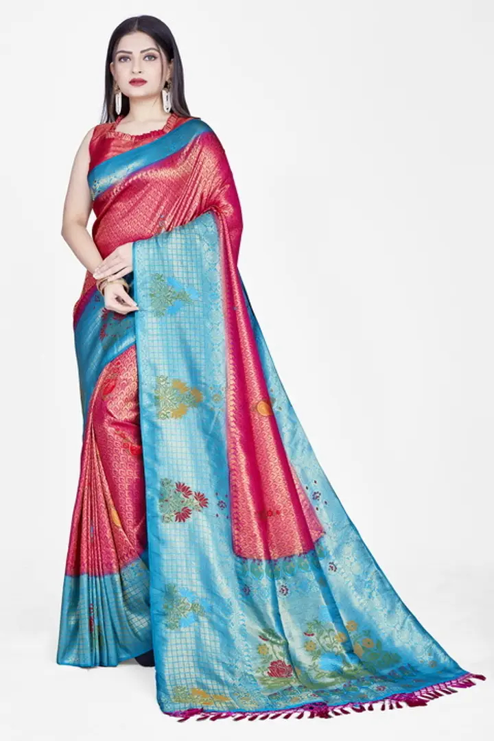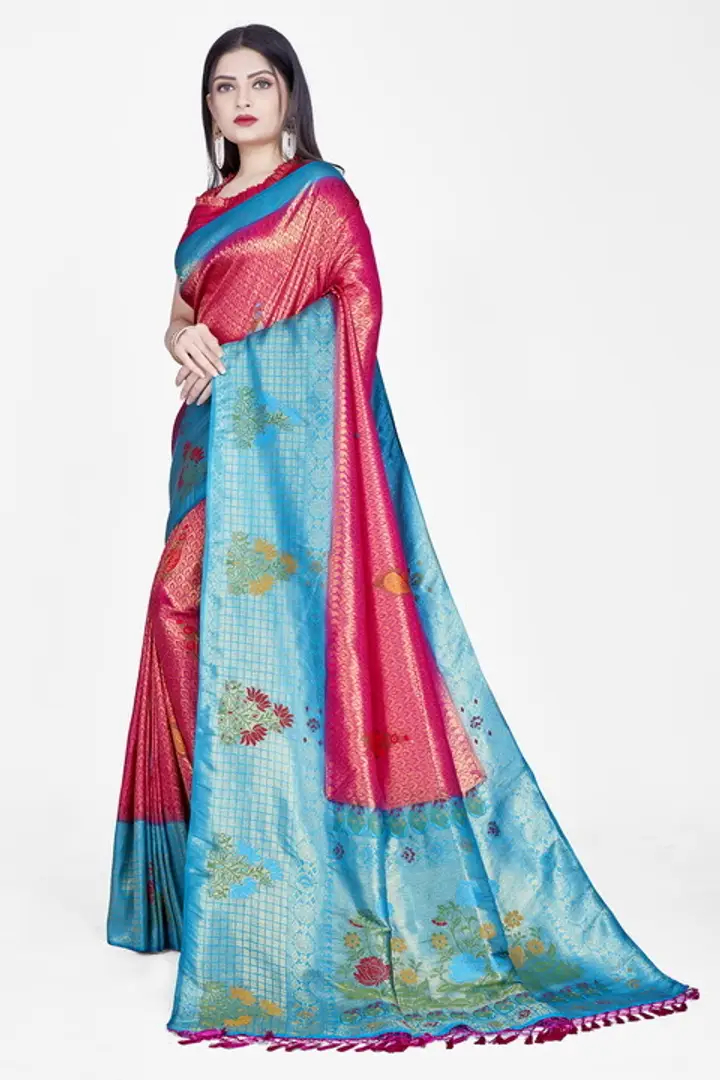 Stylish Polyester Blend Zari Saree With Blouse Piece For Women