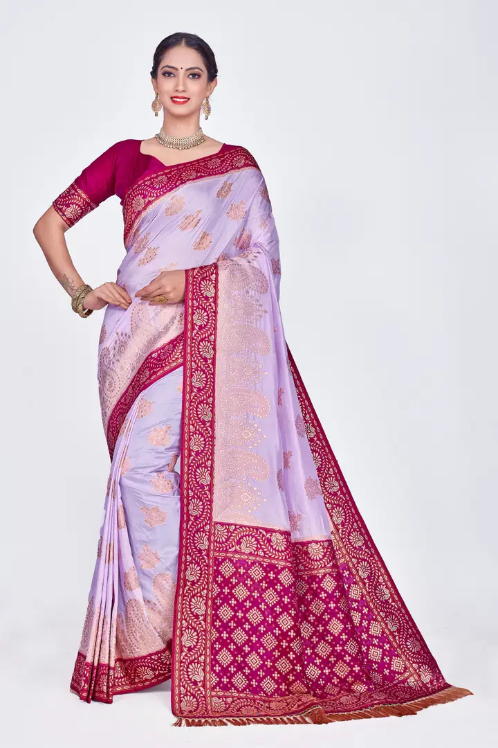 Stylish Polyester Blend Zari Saree With Blouse Piece For Women