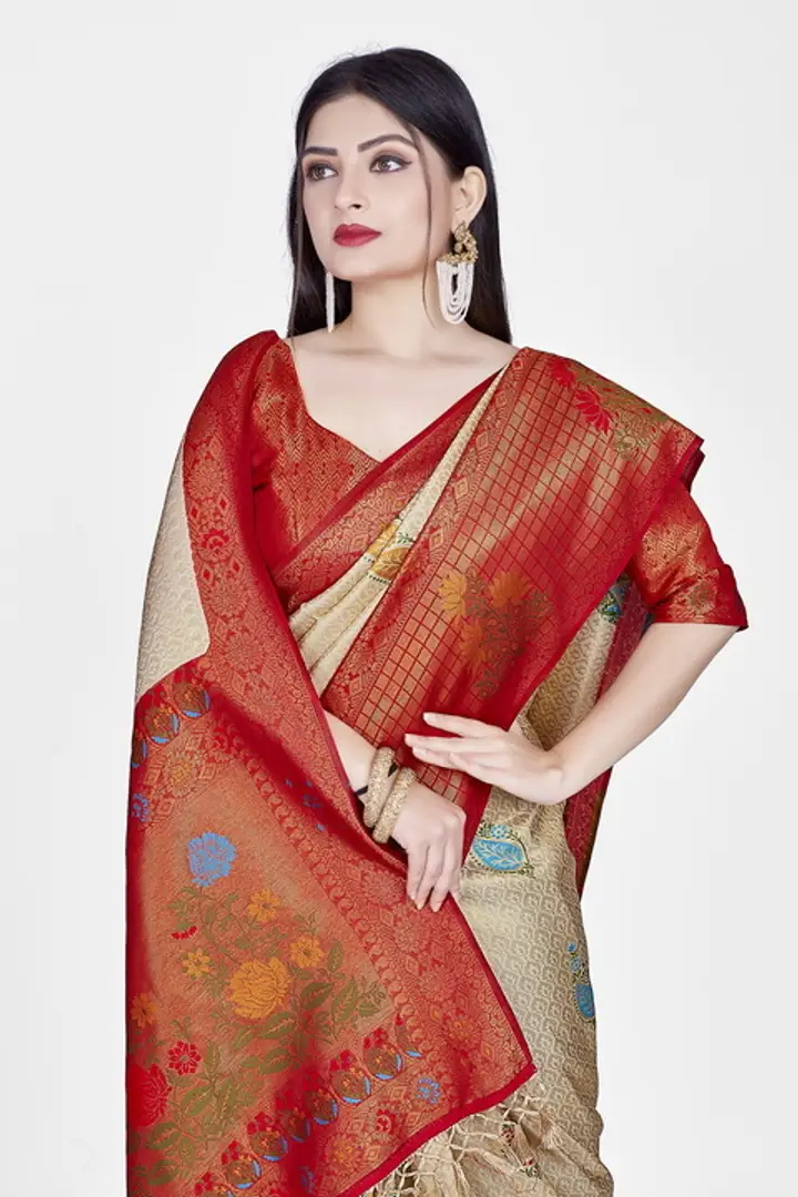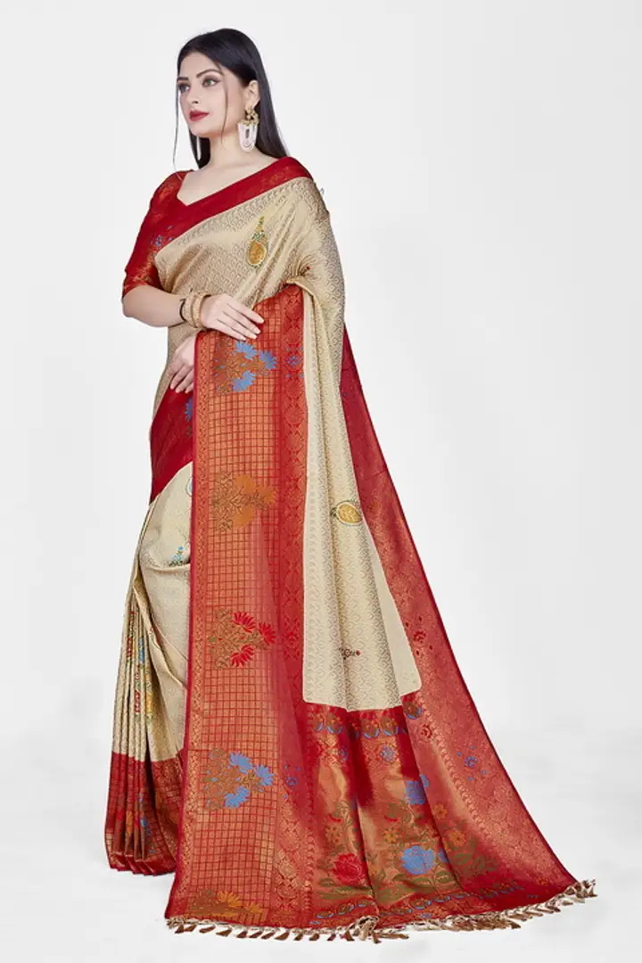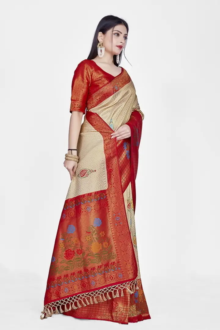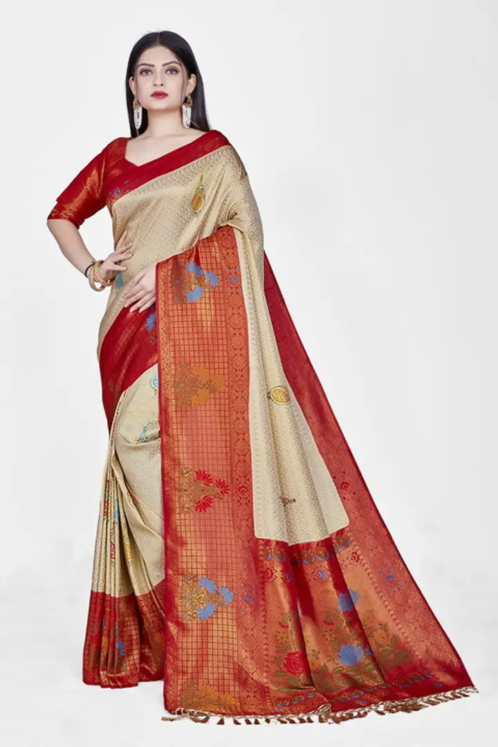 Stylish Polyester Blend Zari Saree With Blouse Piece For Women