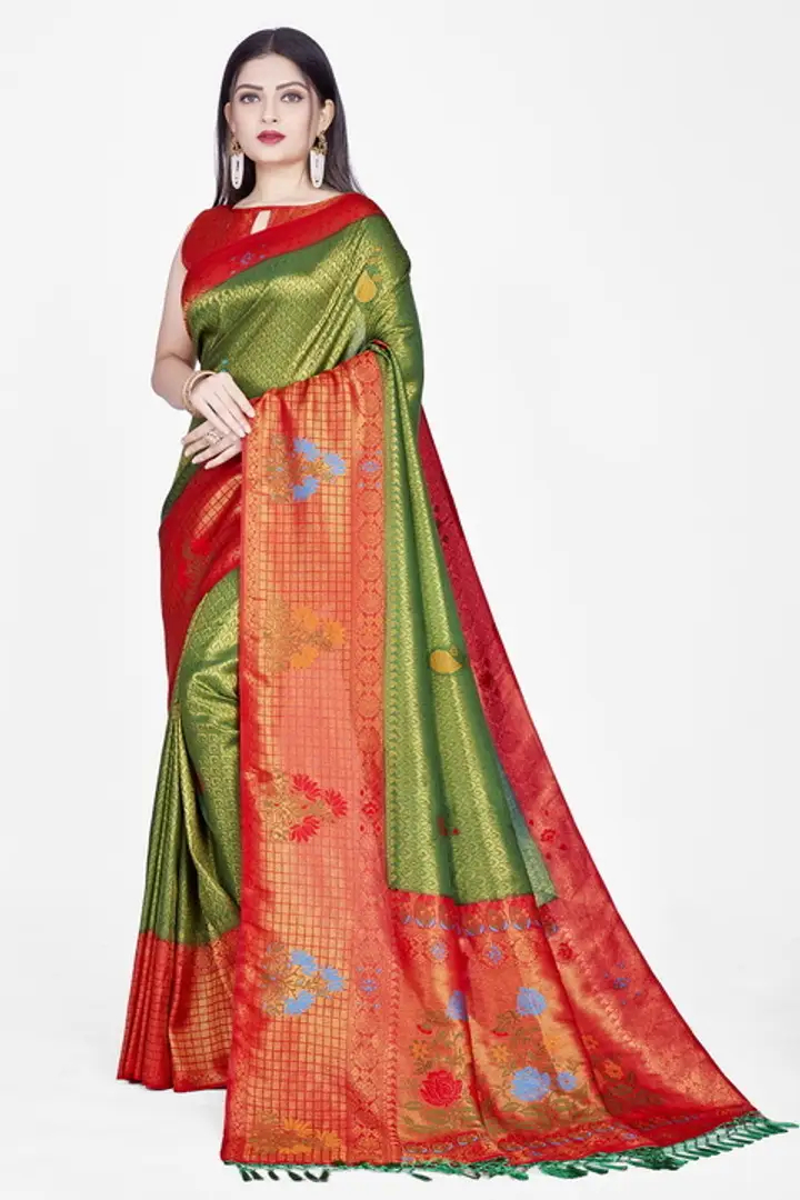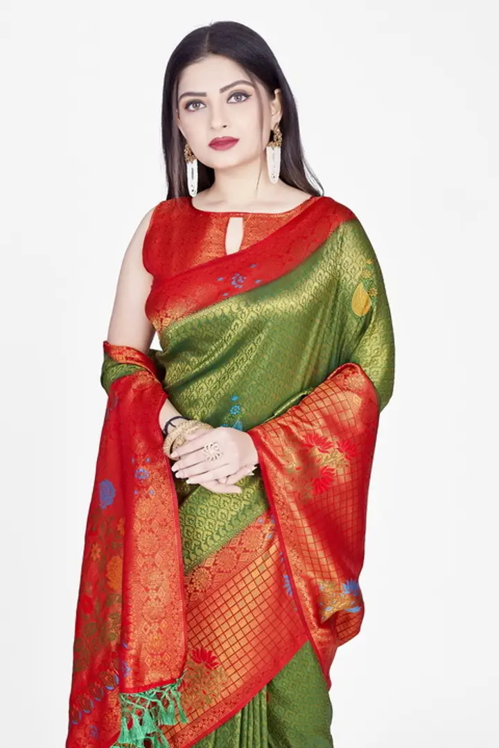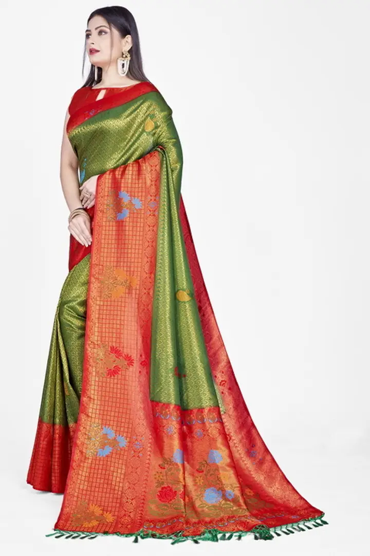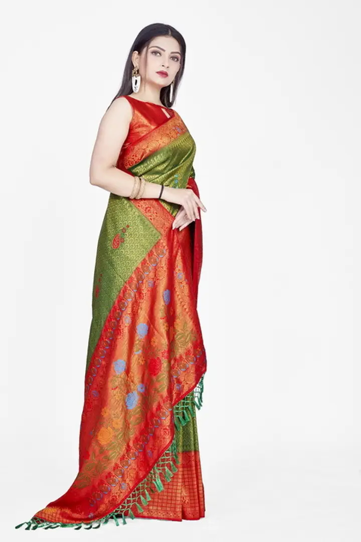 Stylish Polyester Blend Zari Saree With Blouse Piece For Women