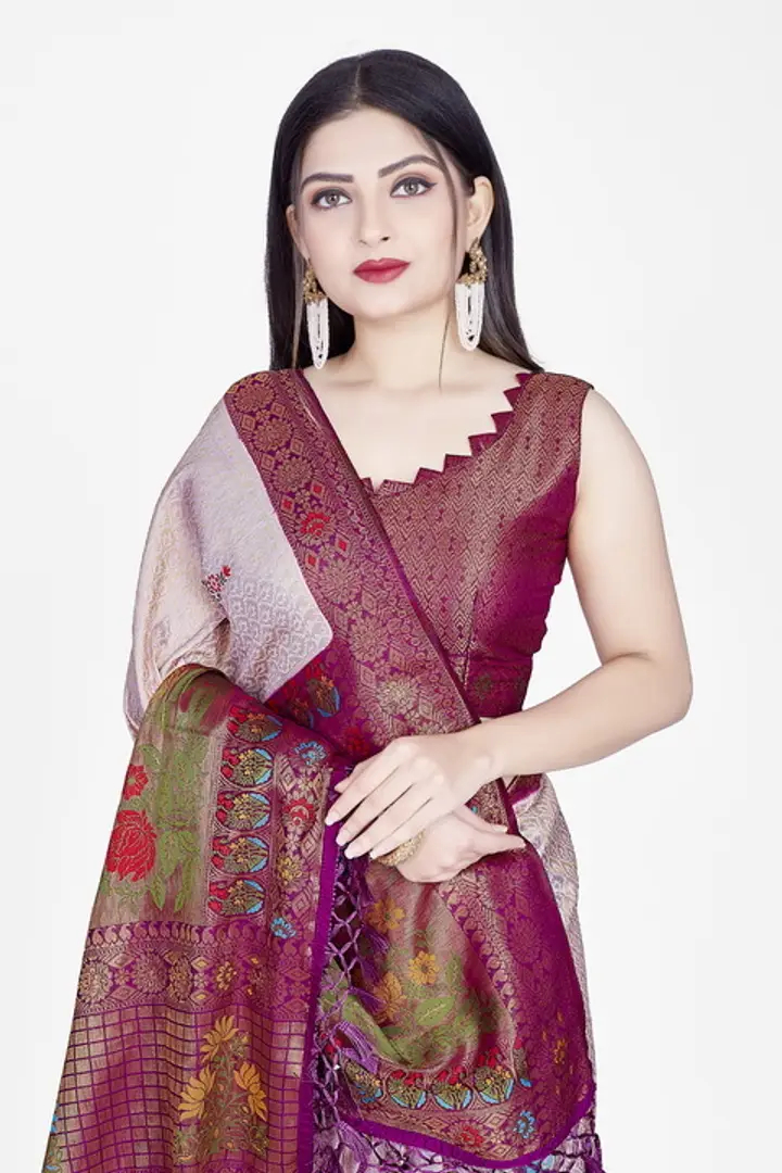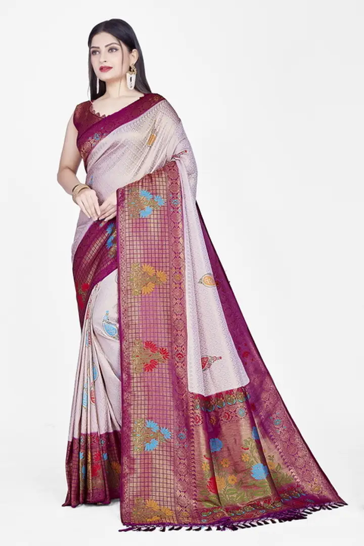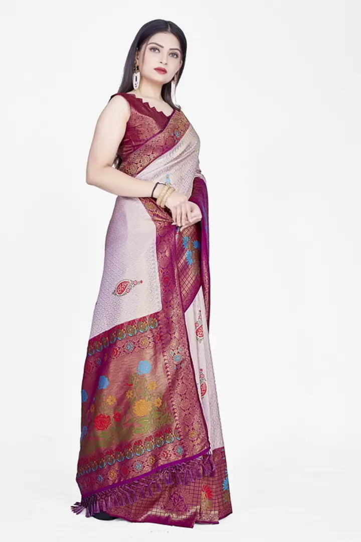 Stylish Polyester Blend Zari Saree With Blouse Piece For Women