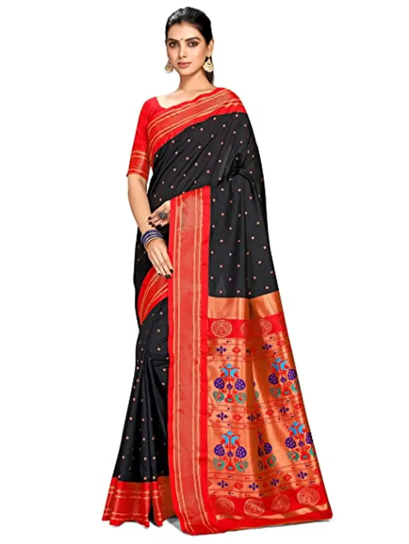 Stylish Tussar Silk Black Saree With Blouse Piece