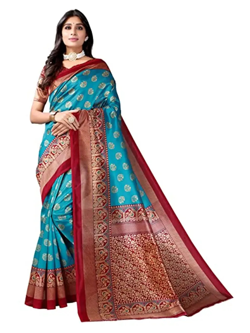 Stylish Tussar Silk Navy Blue Saree With Blouse Piece