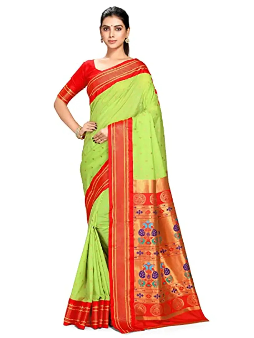 Stylish Tussar Silk Parrot Green Saree With Blouse Piece
