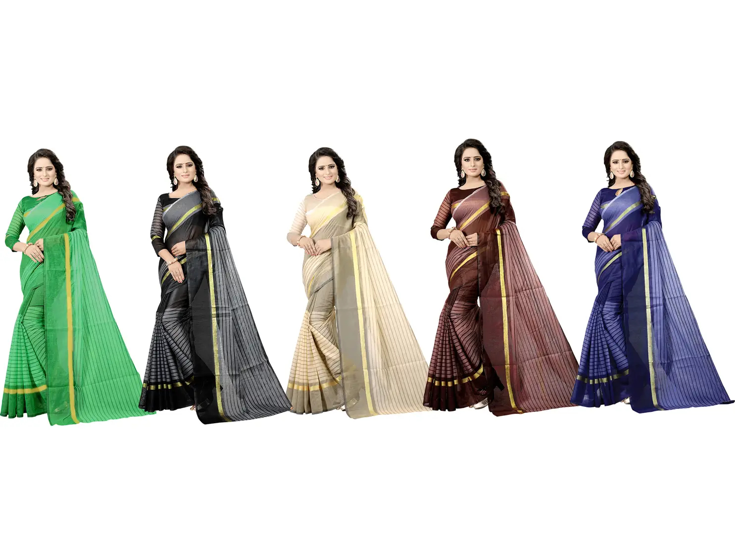 Samai Women's Multicolor Cotton Silk Stripes Printed Combo Saree(Pack of 5,FL-RSTCOM-5_7)