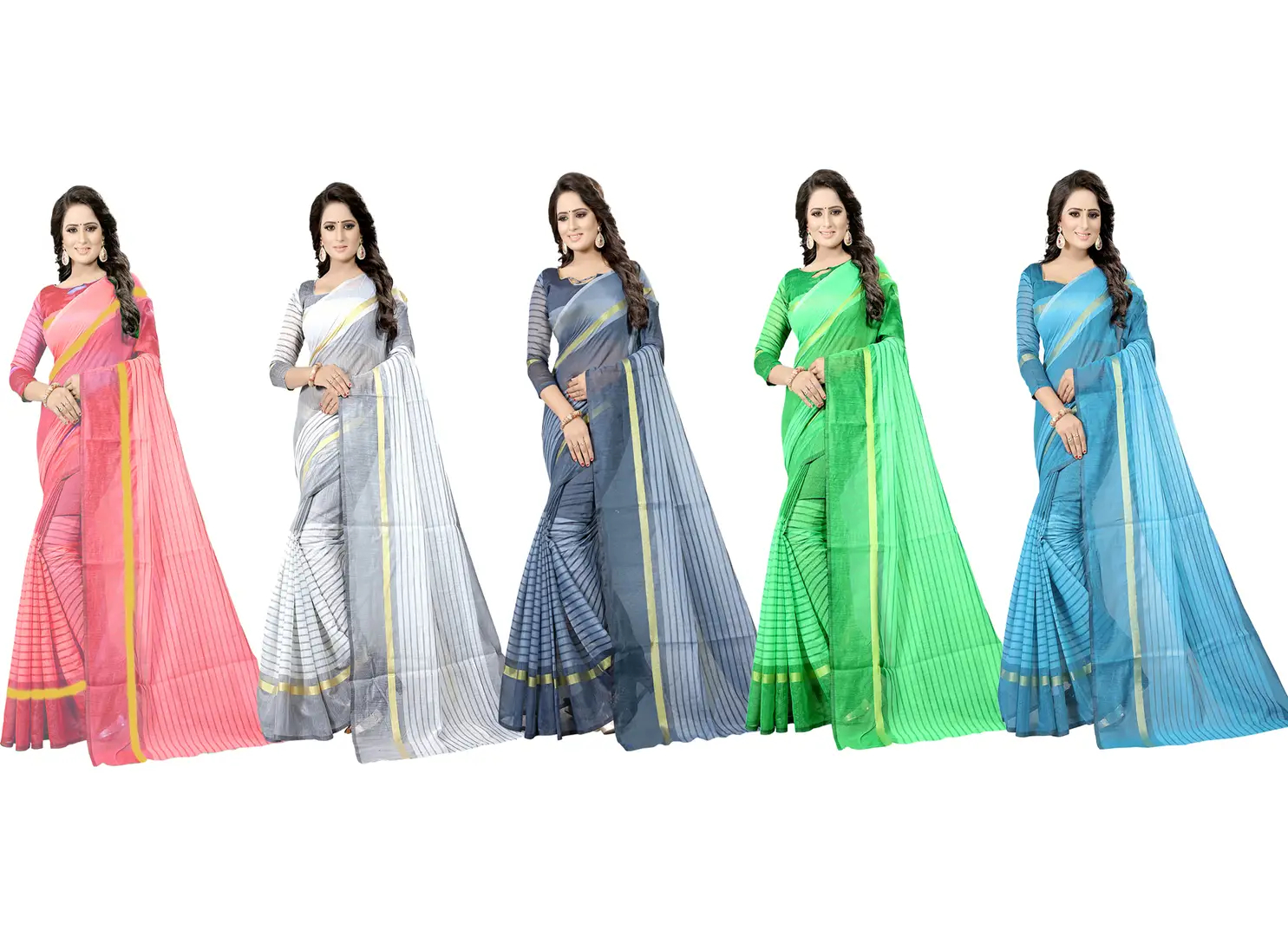 Samai Women's Multicolor Cotton Silk Stripes Printed Combo Saree(Pack of 5,FL-RSTCOM-5_13)