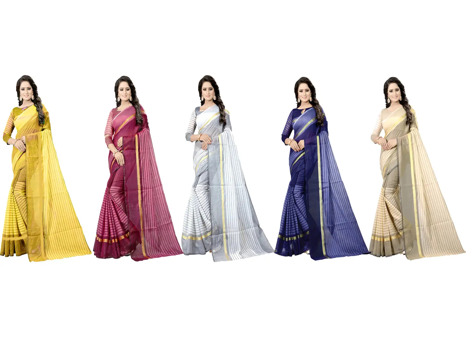 Samai Women's Multicolor Cotton Silk Stripes Printed Combo Saree(Pack of 5,FL-RSTCOM-5_22)
