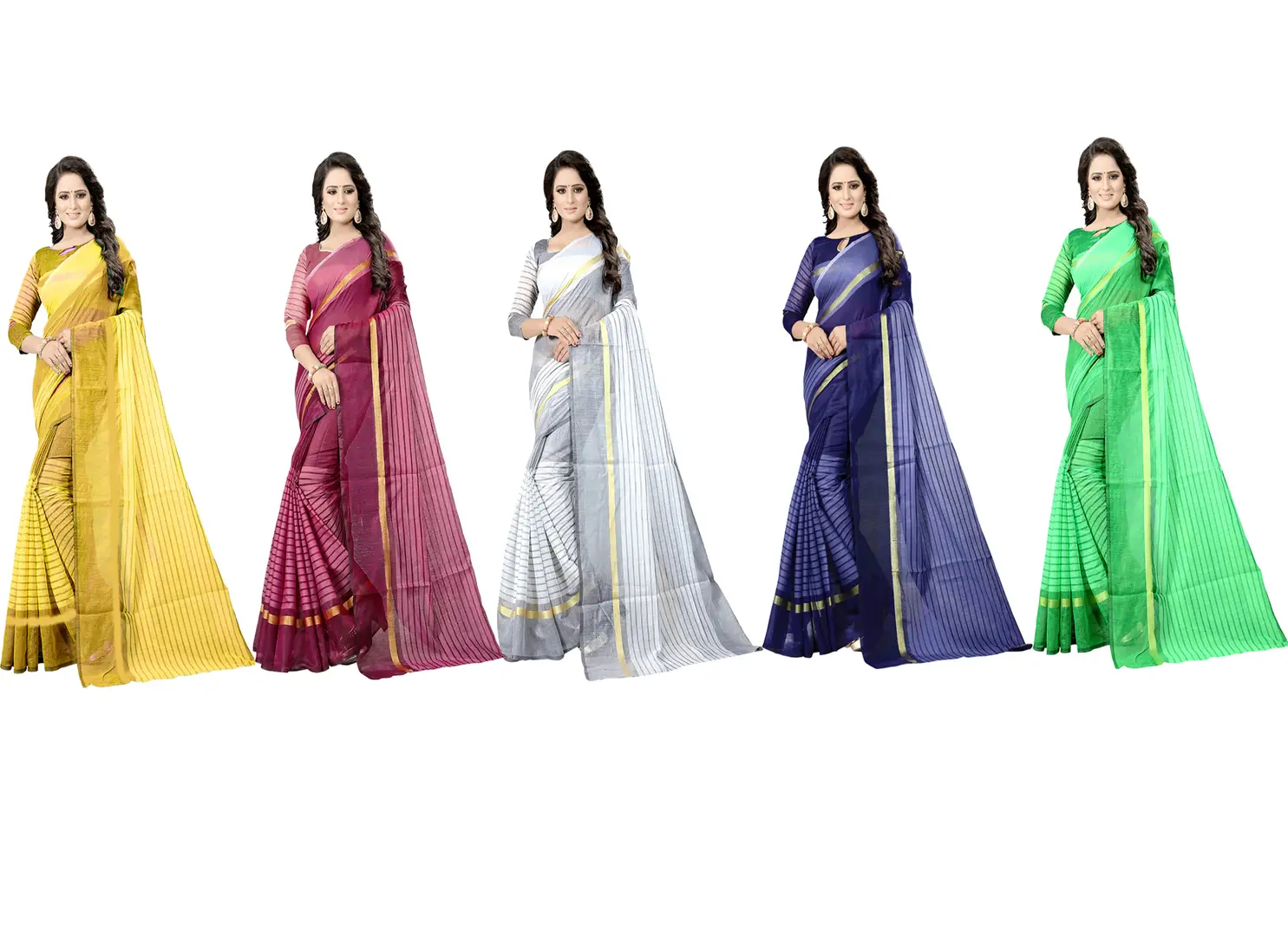 Samai Women's Multicolor Cotton Silk Stripes Printed Combo Saree(Pack of 5,FL-RSTCOM-5_27)
