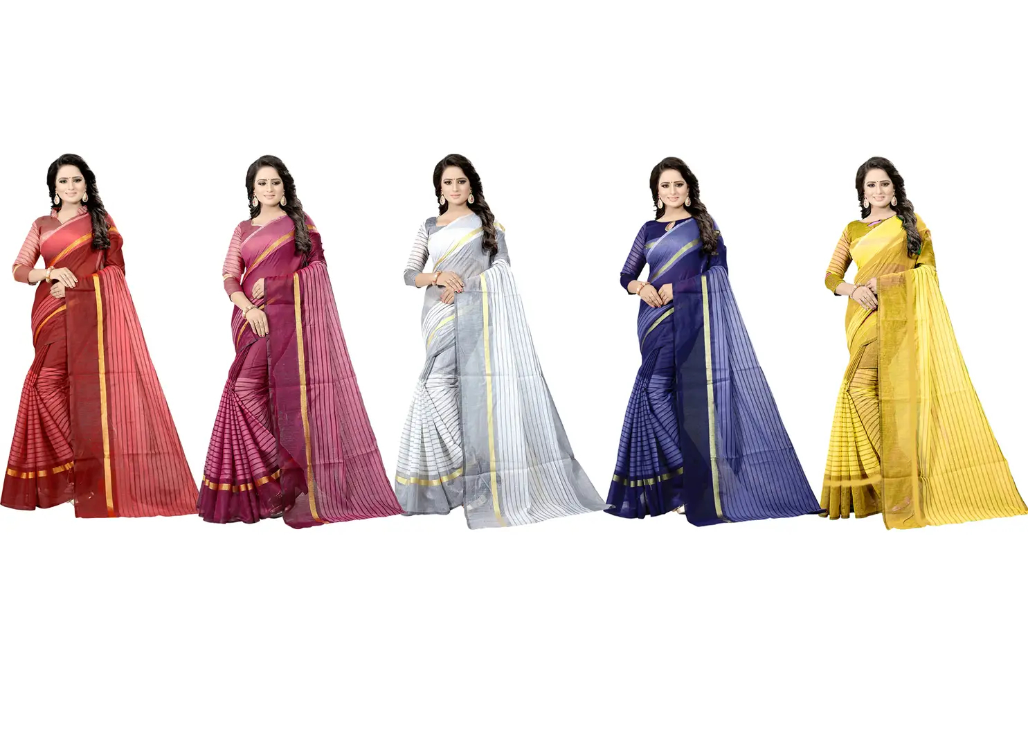 Samai Women's Multicolor Cotton Silk Stripes Printed Combo Saree(Pack of 5,FL-RSTCOM-5_29)