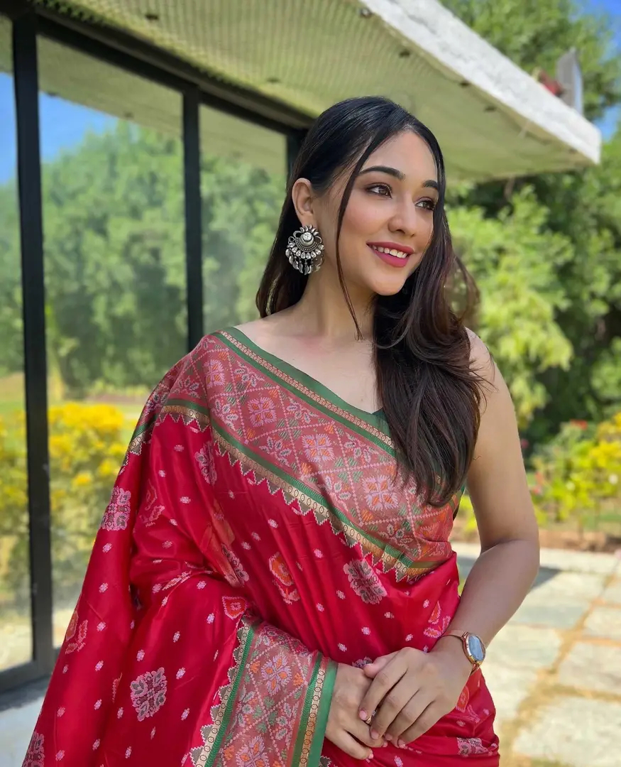 Women's Banarasi Patola Silk Saree With Unstitched Blouse Piece