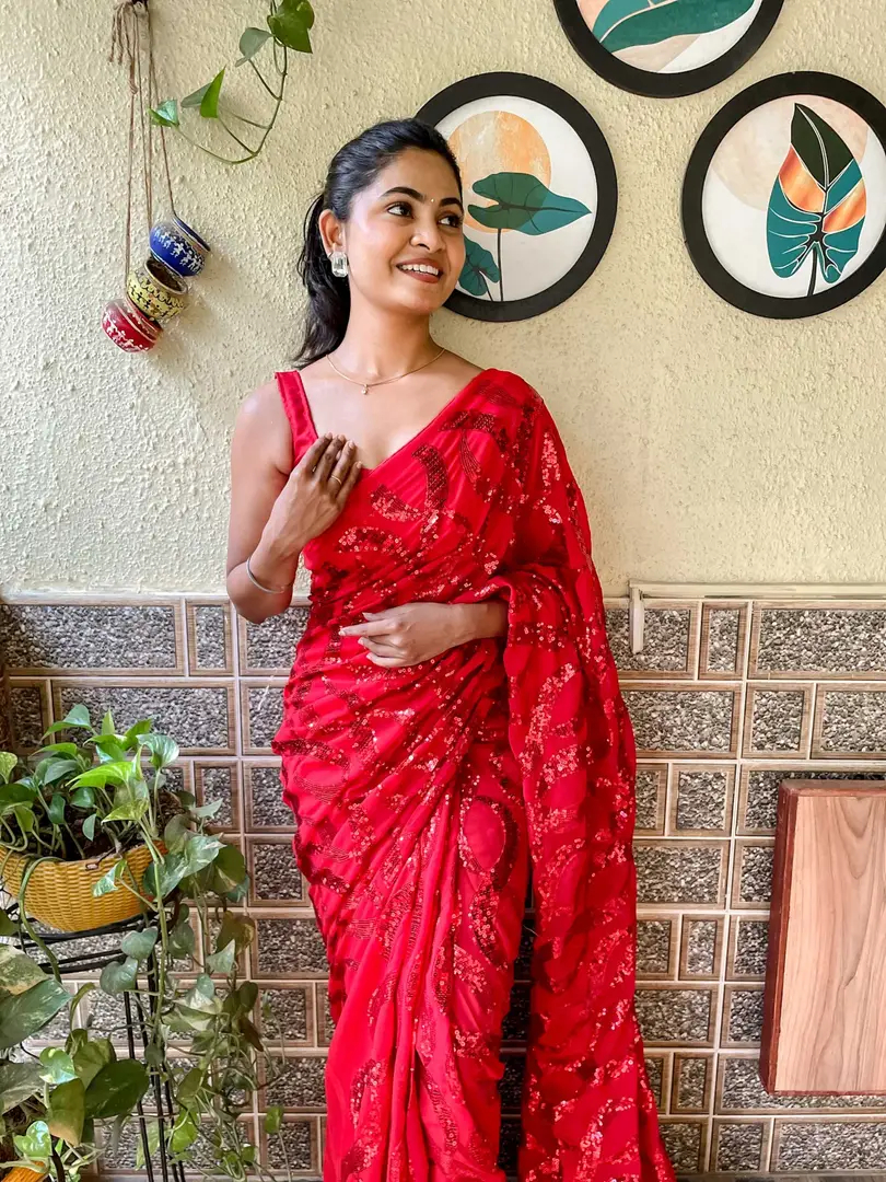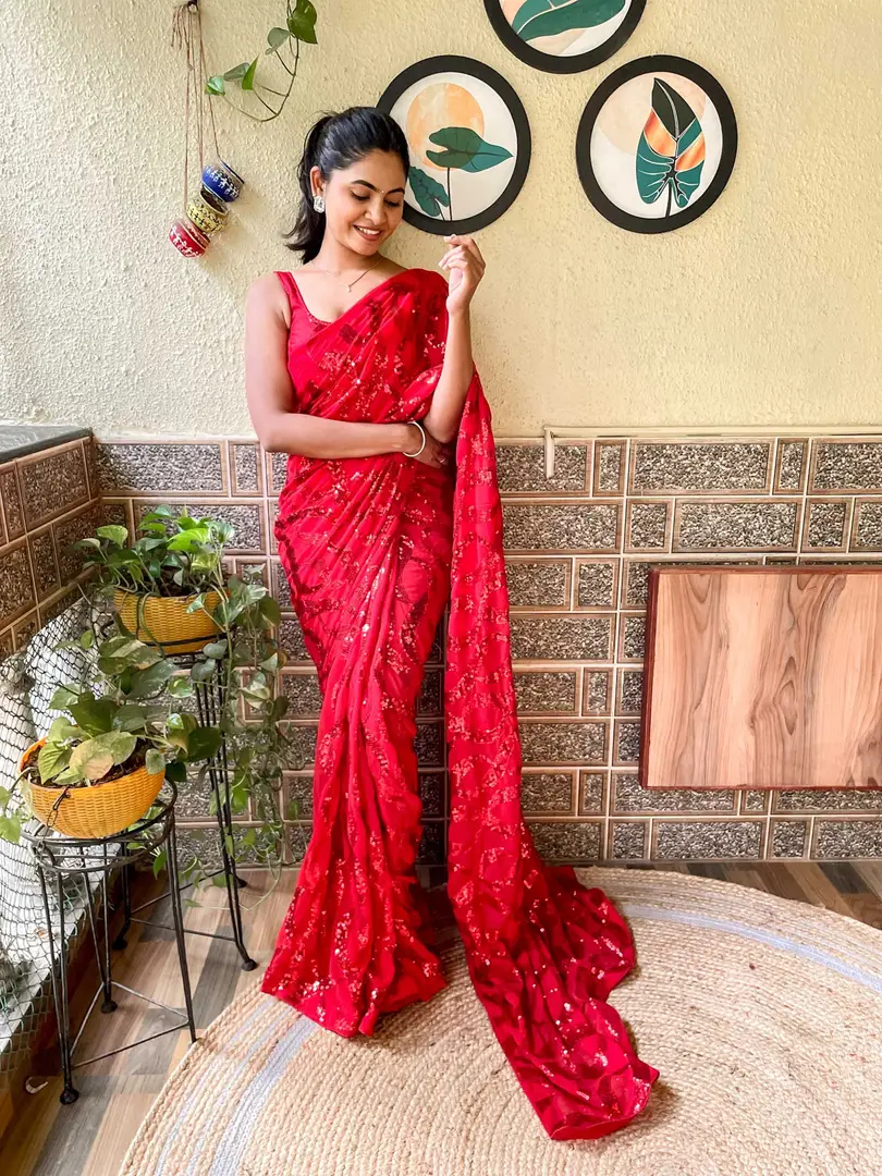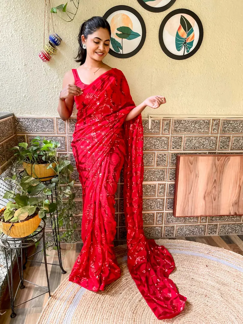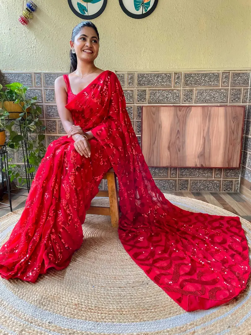 Womens Georgette Embroidery Sequance Work Saree With Blouse Piece