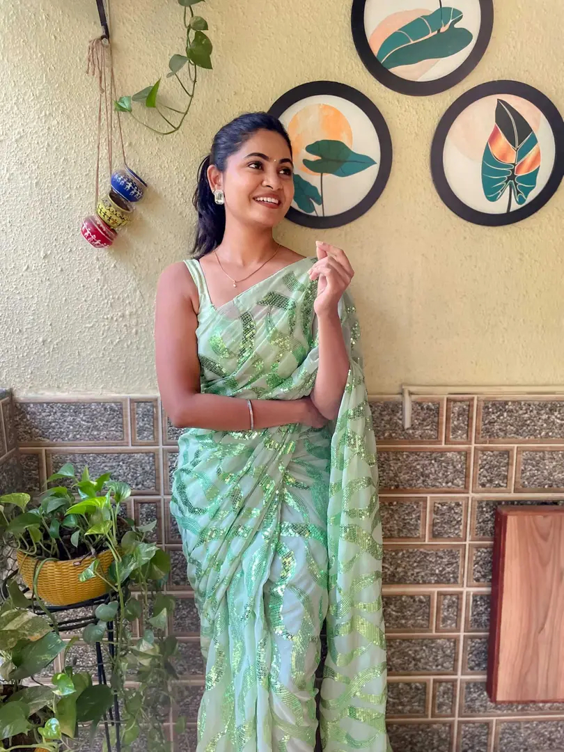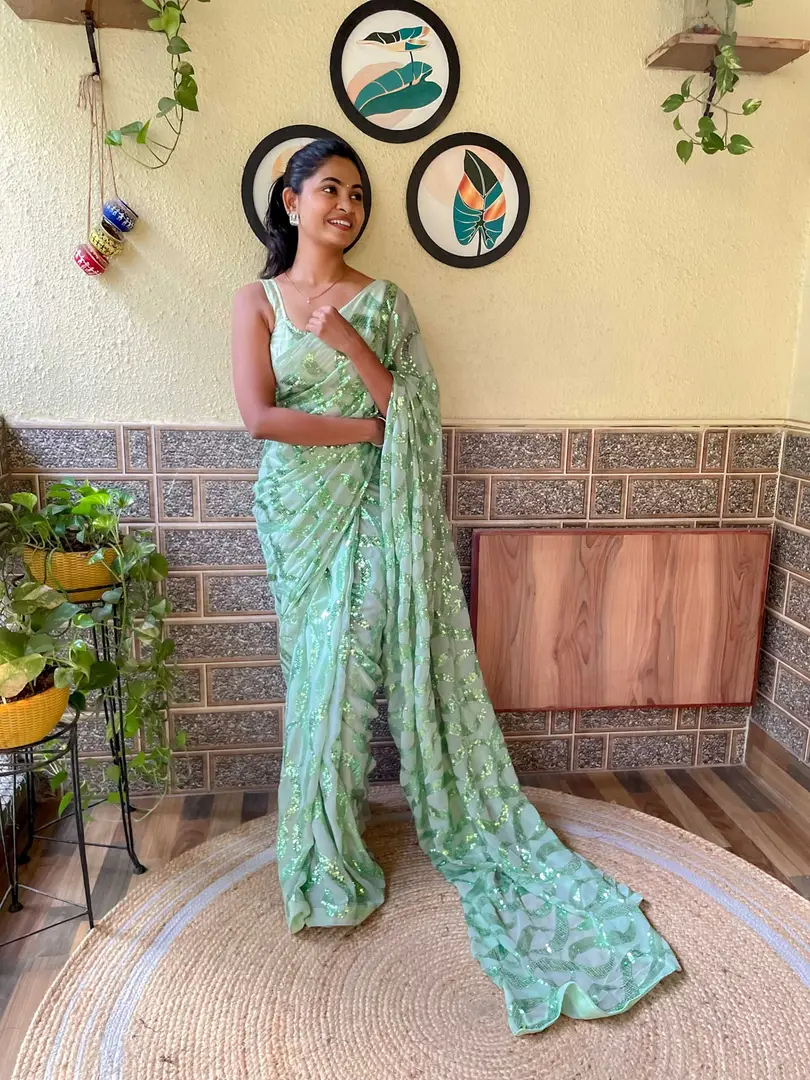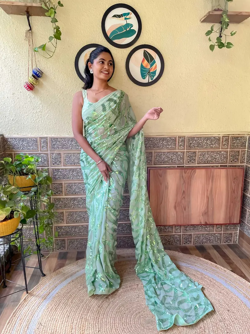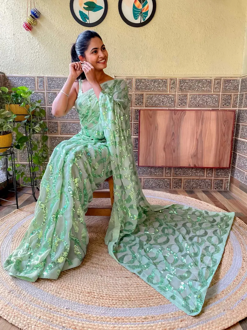 Womens Georgette Embroidery Sequance Work Saree With Blouse Piece