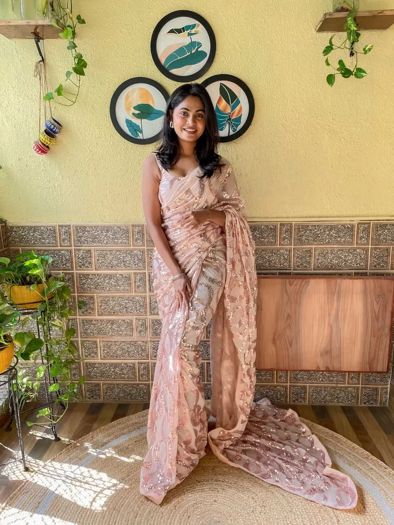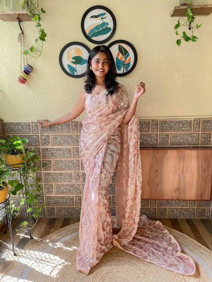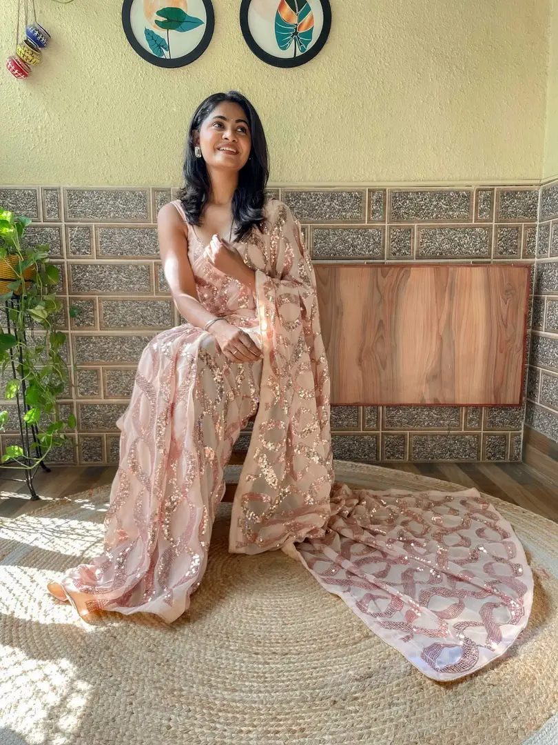 Womens Georgette Embroidery Sequance Work Saree With Blouse Piece