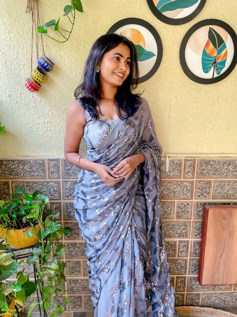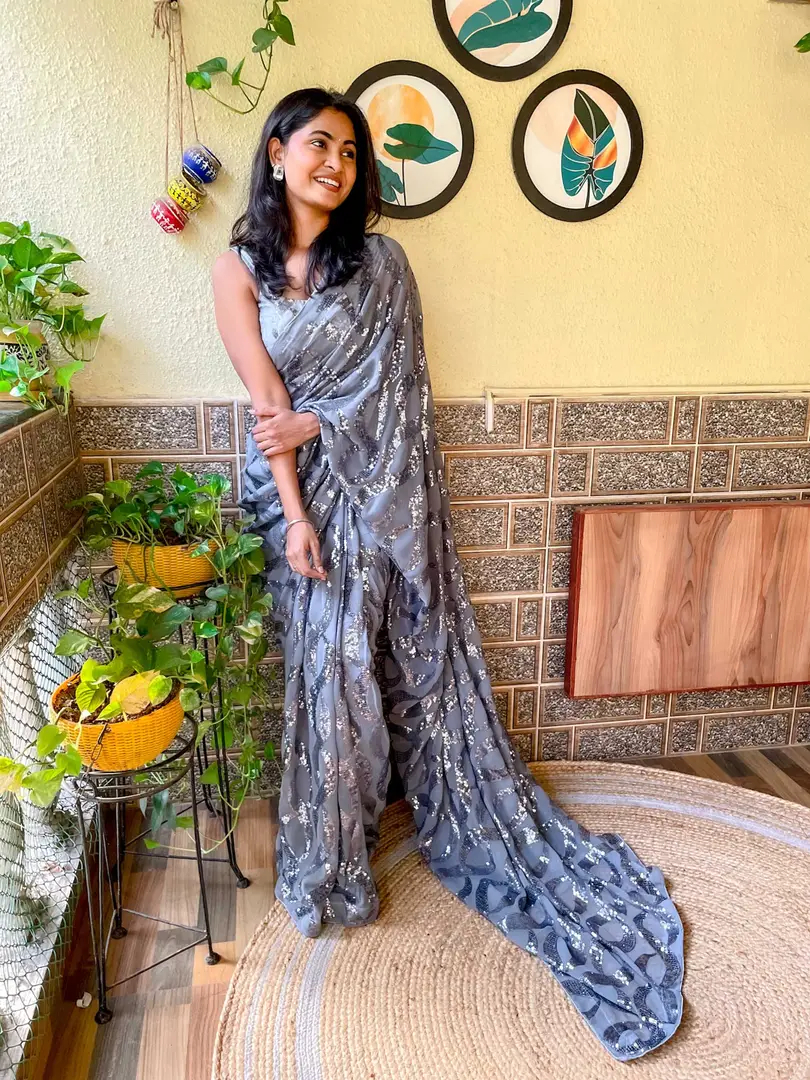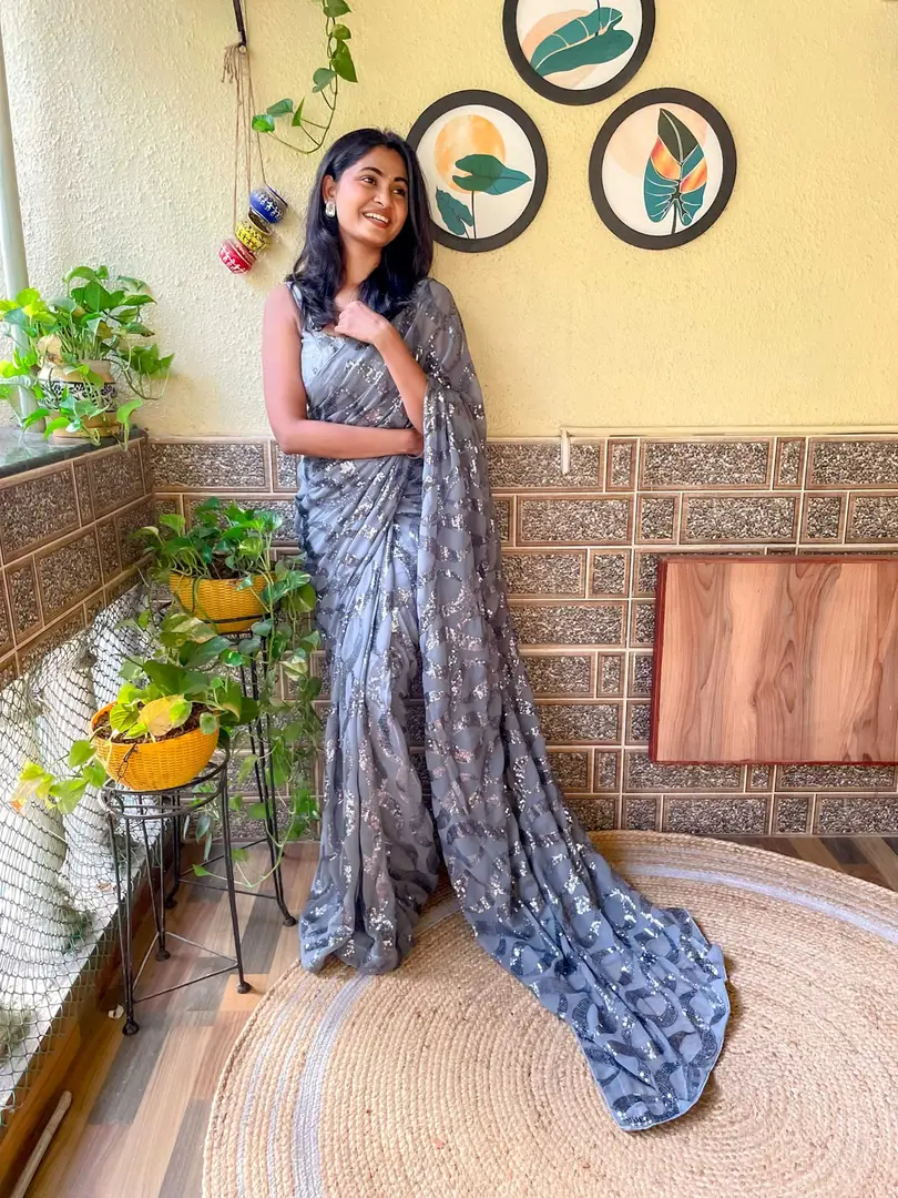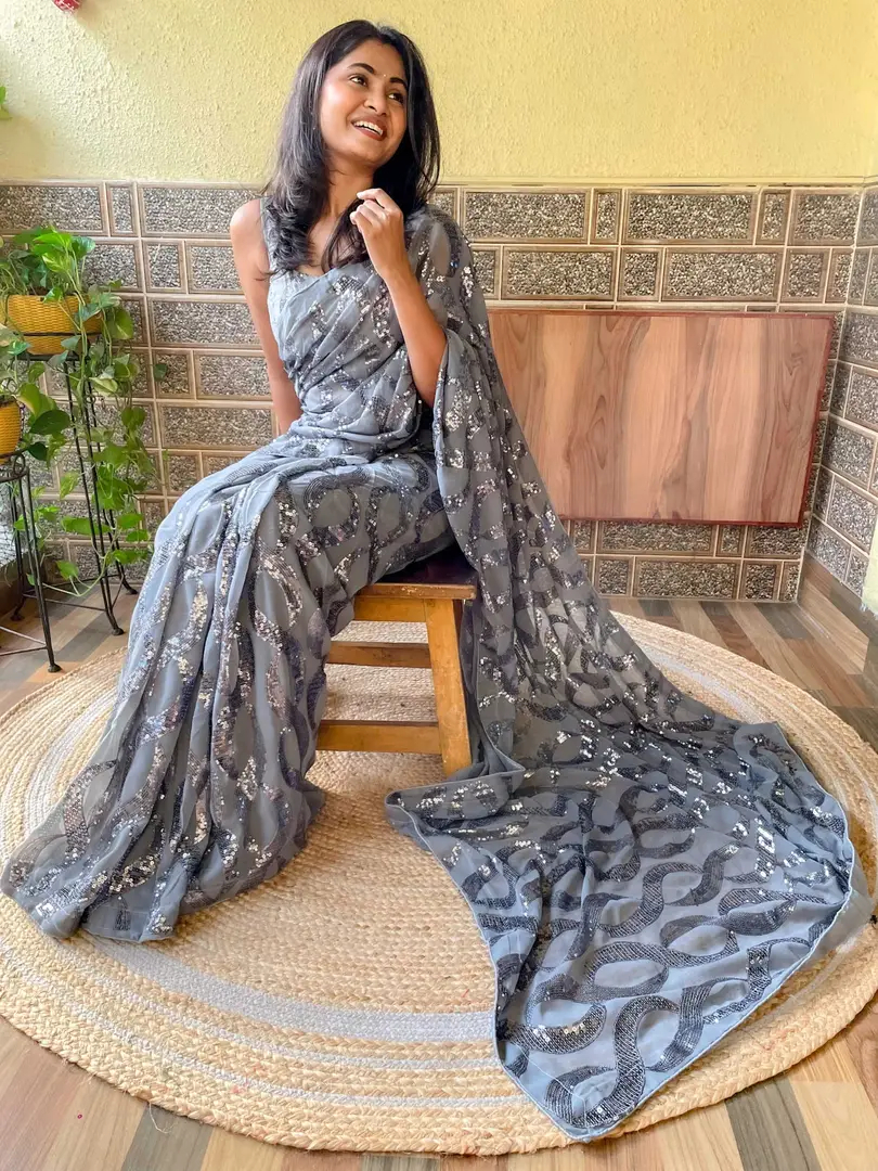Womens Georgette Embroidery Sequance Work Saree With Blouse Piece