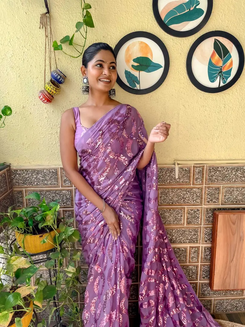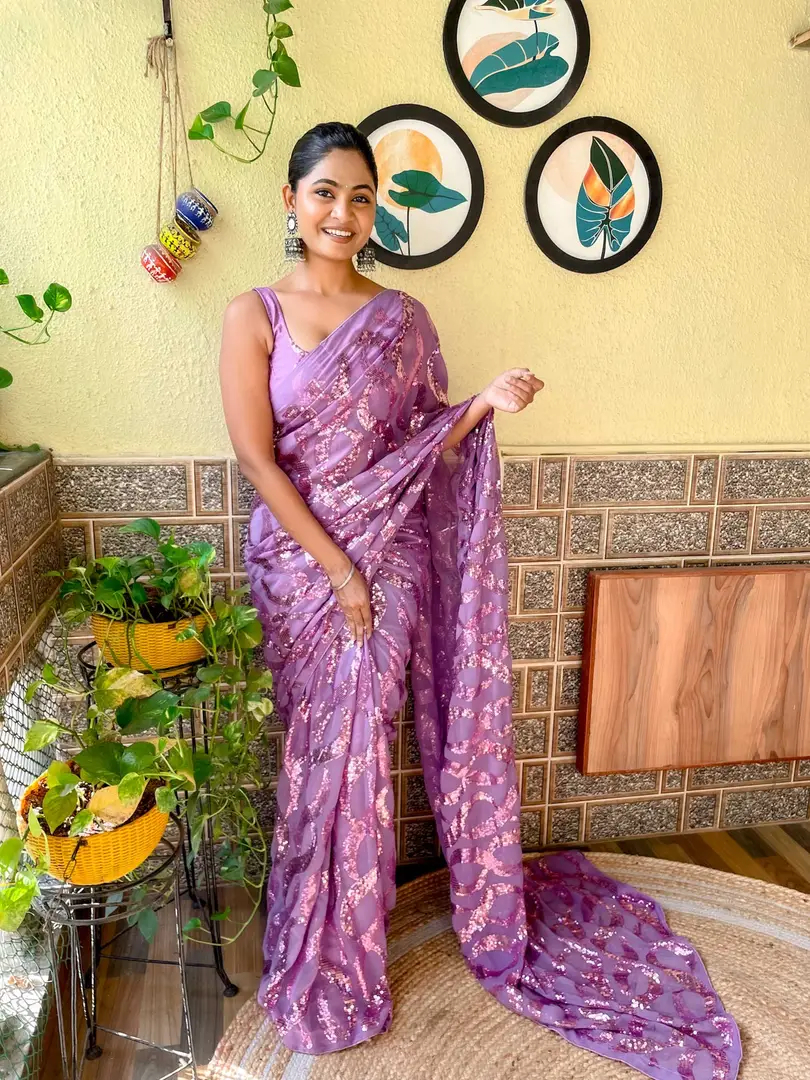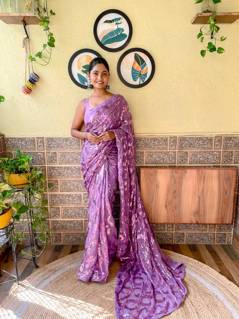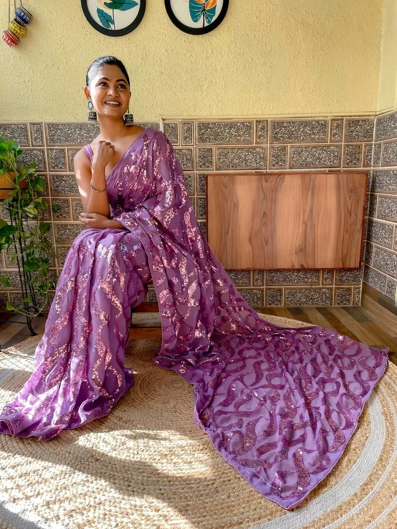 Womens Georgette Embroidery Sequance Work Saree With Blouse Piece