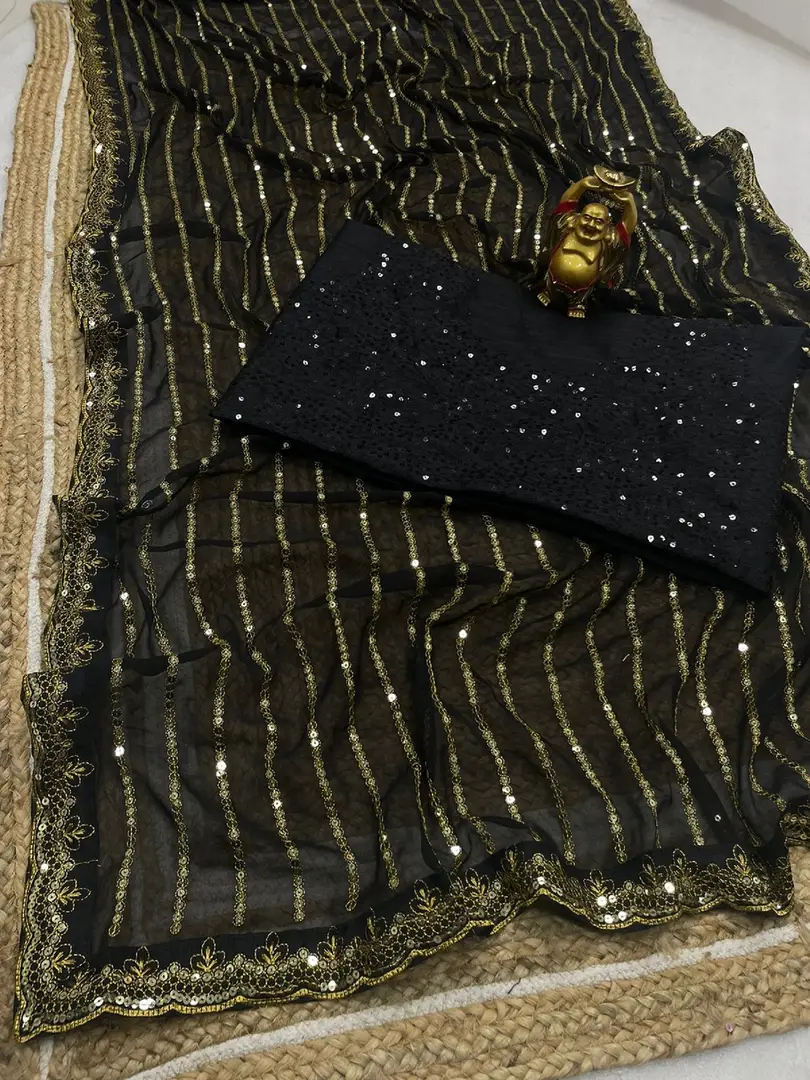Womens Georgette Sequance Work Saree With Blouse Piece