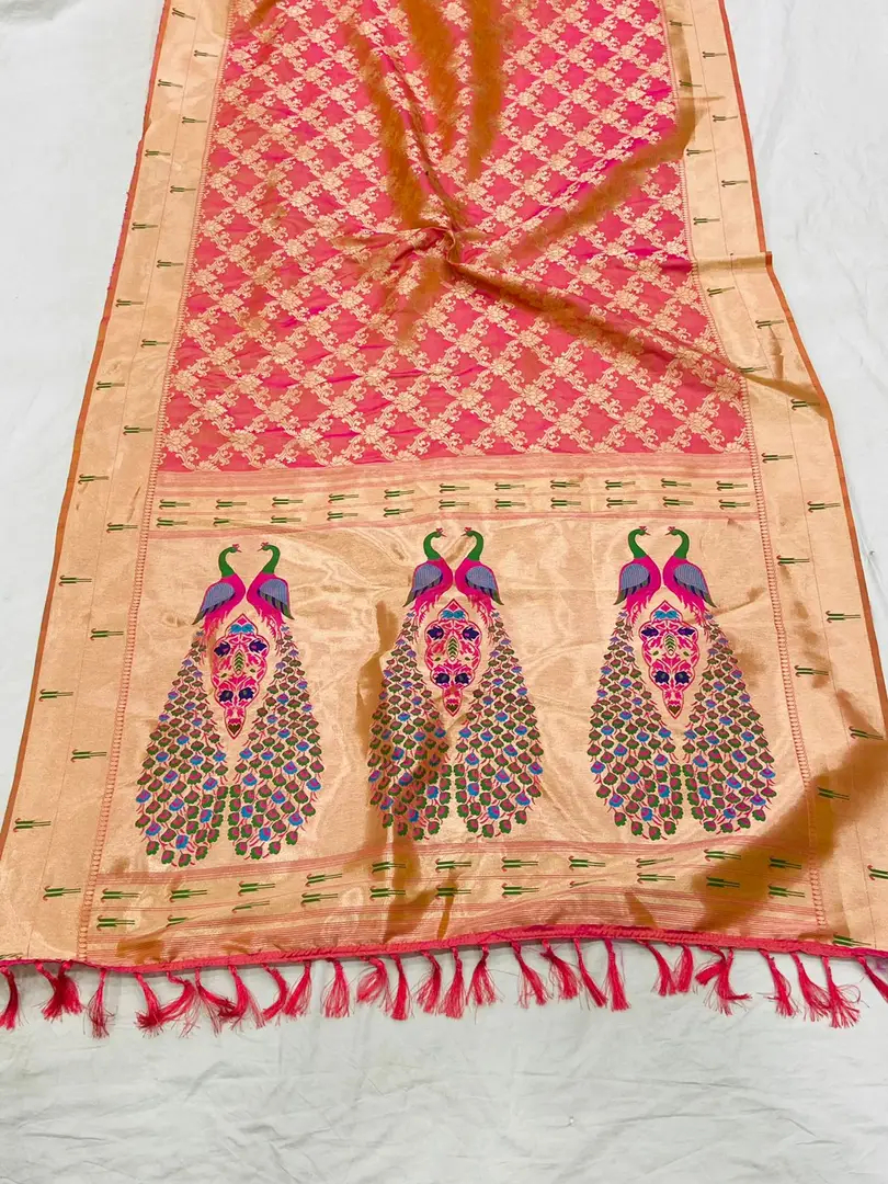 Women's Paithani Silk Saree With Unstitched Blouse Piece