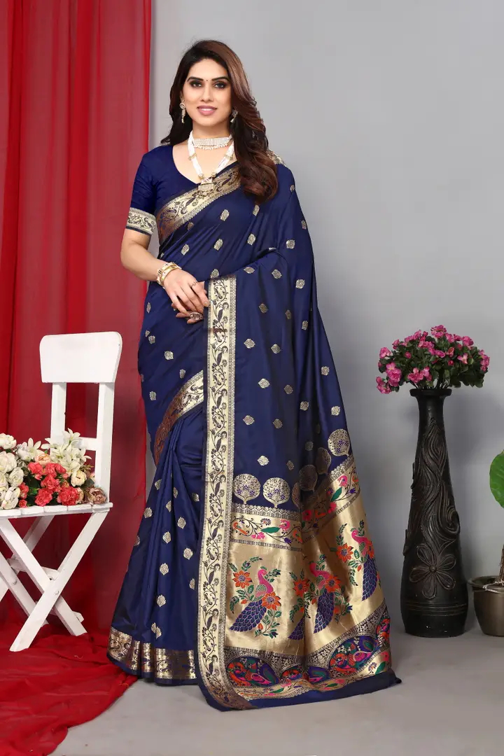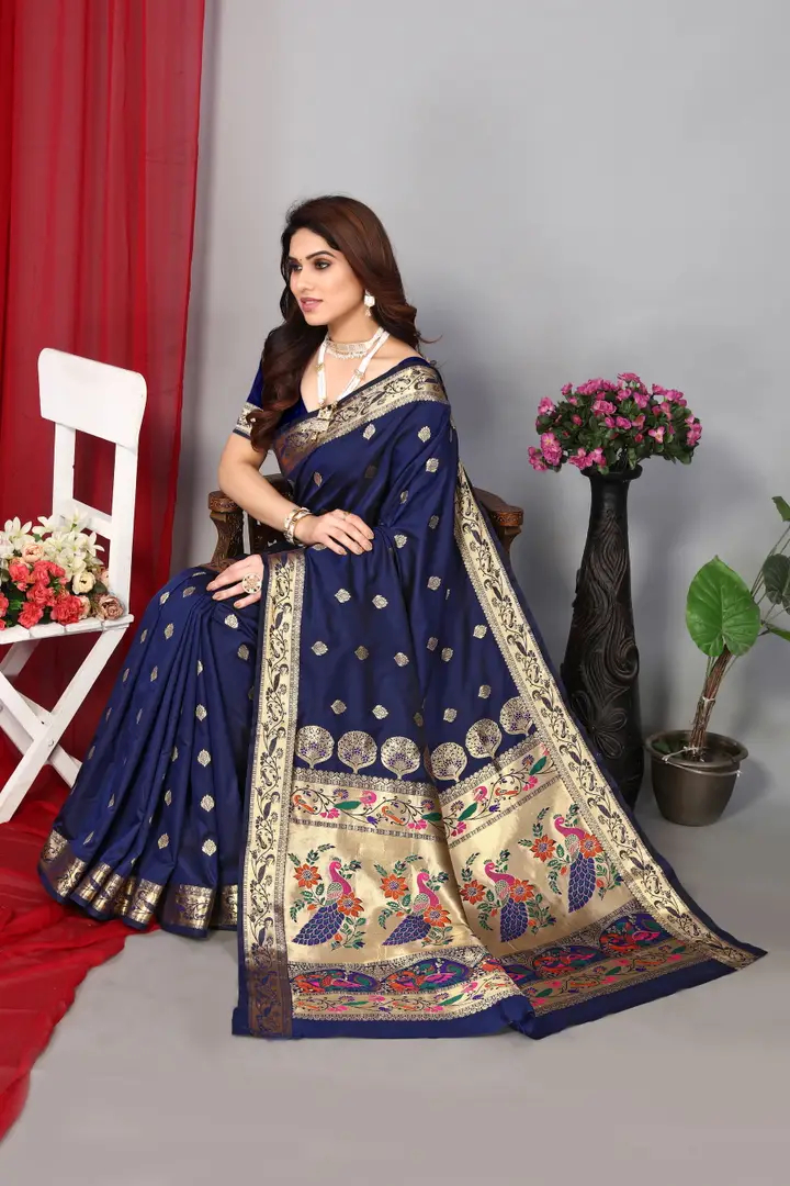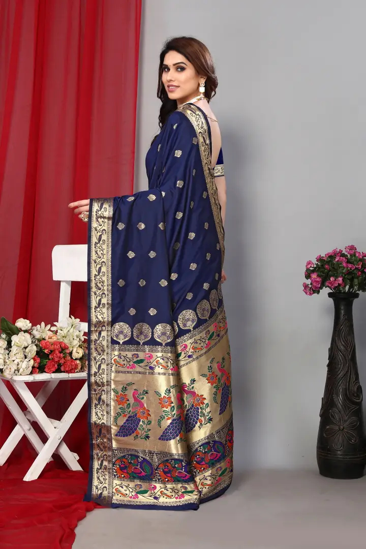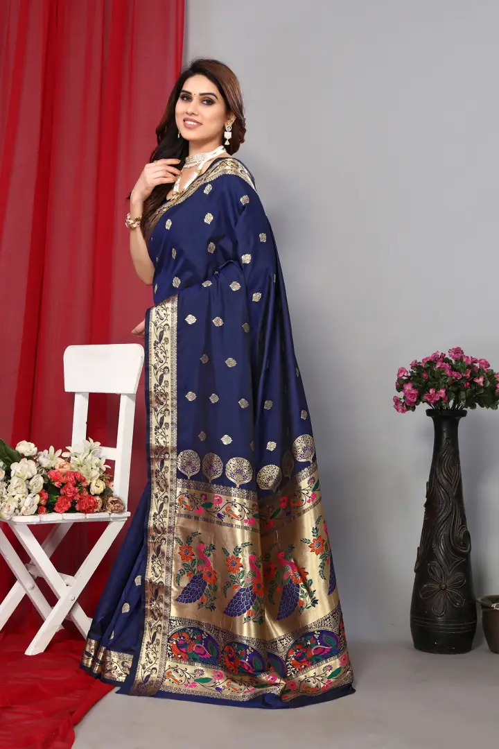 Women's Paithani Silk Saree With Unstitched Blouse Piece