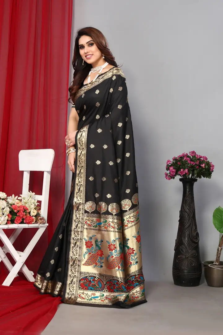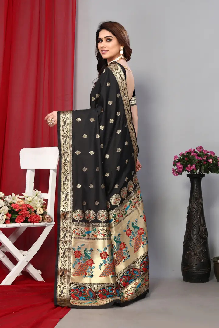 Women's Paithani Silk Saree With Unstitched Blouse Piece