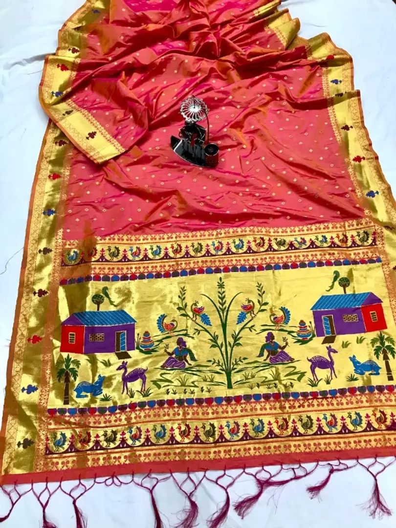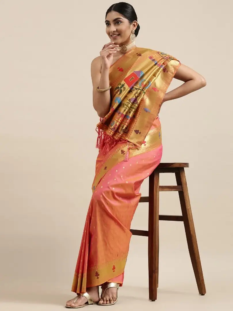 Womens Paithani Silk Saree With Unstitched Blouse Piece