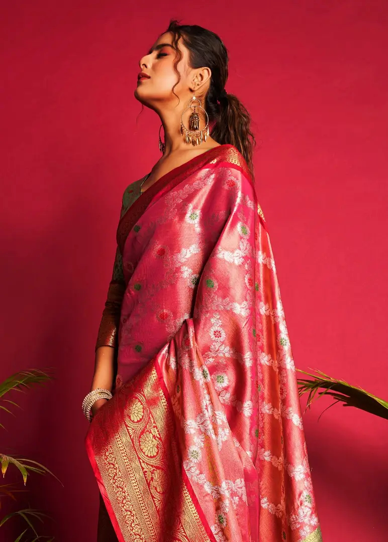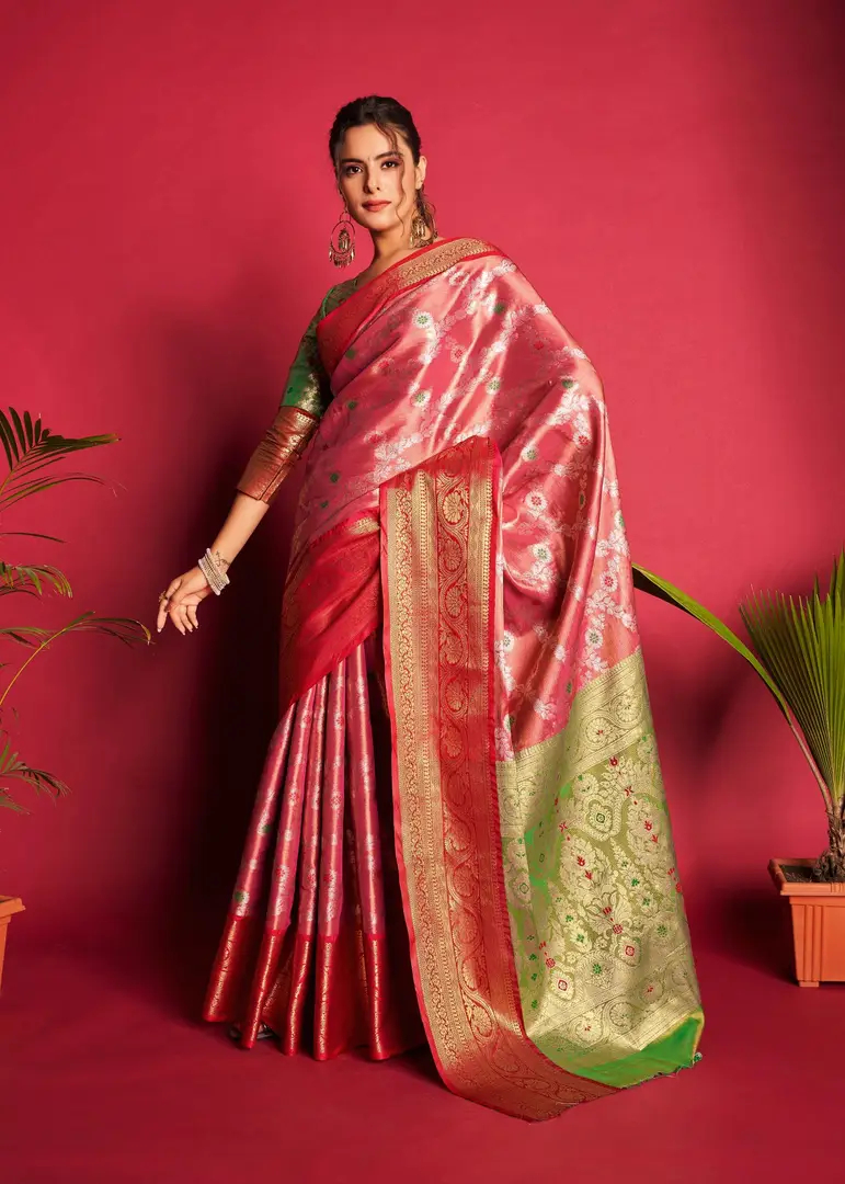 Womens Soft Kanjivaram Silk Blend Saree With Blouse Piece
