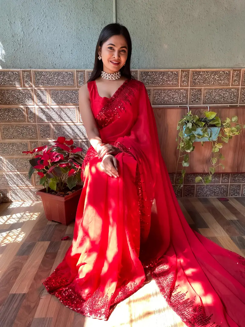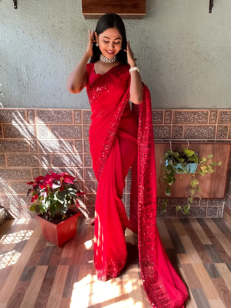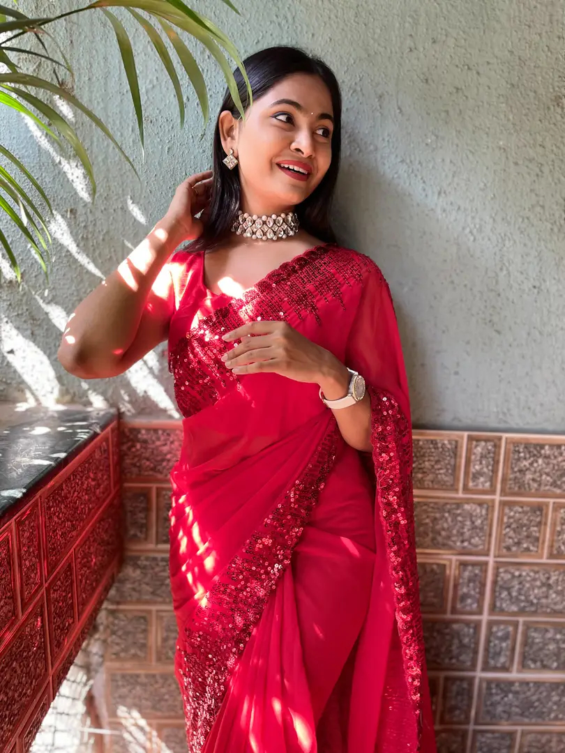 Georgette With Seqwance Work And Cut Work Border with Blouse Pcs