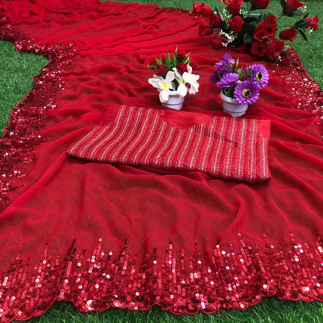 Georgette With Seqwance Work And Cut Work Border With Blouse Pcs