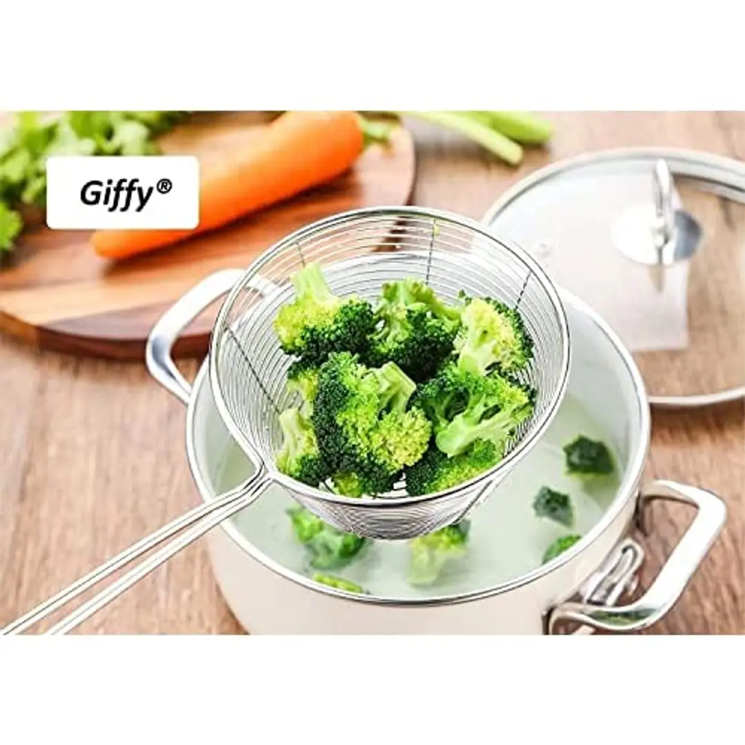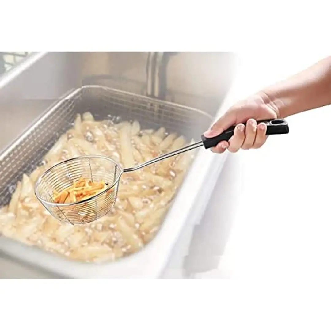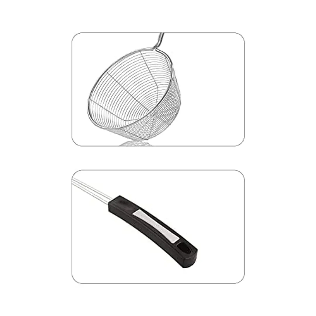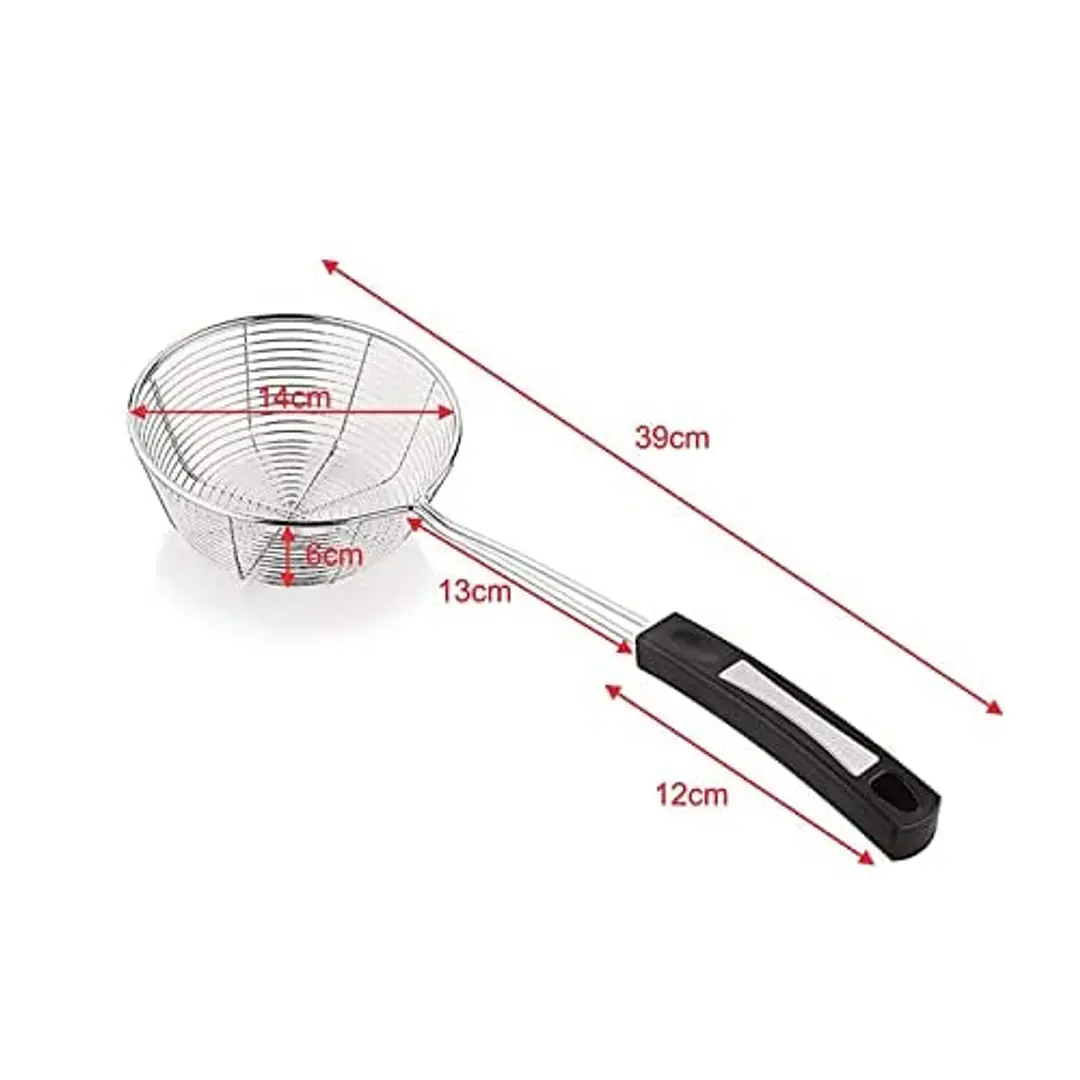 Giffy? Frying Stainless Steel Wire Strainer For Home Kitchen, Snack, Pakora, Poori- Jhara | Jhalni | Charni With Heat Resistant Handle With Comfortable Grip, 15 Inch