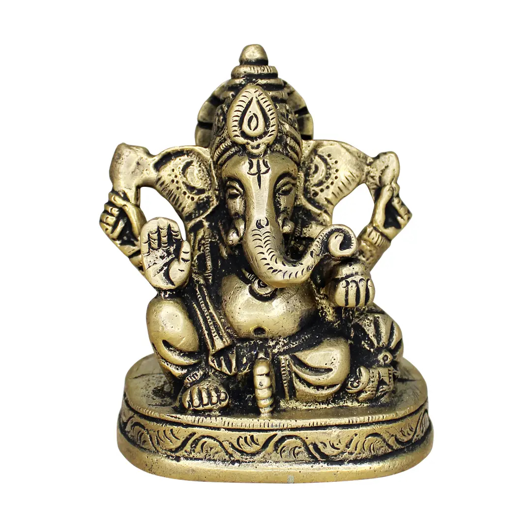 Shree Ashtadhatu Brass Ganesha, Ganpati, Ganeshji Or Vignaharta Is The Name Of A Hindu Deity With An Elephant Head, Meaning The Arrival Of Good, Good Luck, And Wisdom. He Is The Son Of Lord Shiva And Goddess Parvati. He Is Worshiped At Store Opening Ceremonies, Celebrations, Pooja Or Other Activities. Believers Believe That Prayer To Ganesha Brings Prosperity, Success, And Goodwill Because Ganesha Is Married To Riddhi And Siddhi. In Addition To These Attributes, He Is Also Popular For Removing Obstacles And Keeping Negatives Away. For All These Facts, Putting The Ganesha Statue At Home And Practicing Murti Pooja Occupies An Important Place In Everyone's Mind.Ganesh Ganesha Ganpati Ganapathi Idol Statue God Bring Prosperity And Happiness In Your Home Office.Ganesh Is Revered As A God Of Wealth, Wisdom, Learning, And Knowledge. Sculpture Of Ganesha Can Be Used To Achieve Positive Feng Shui.