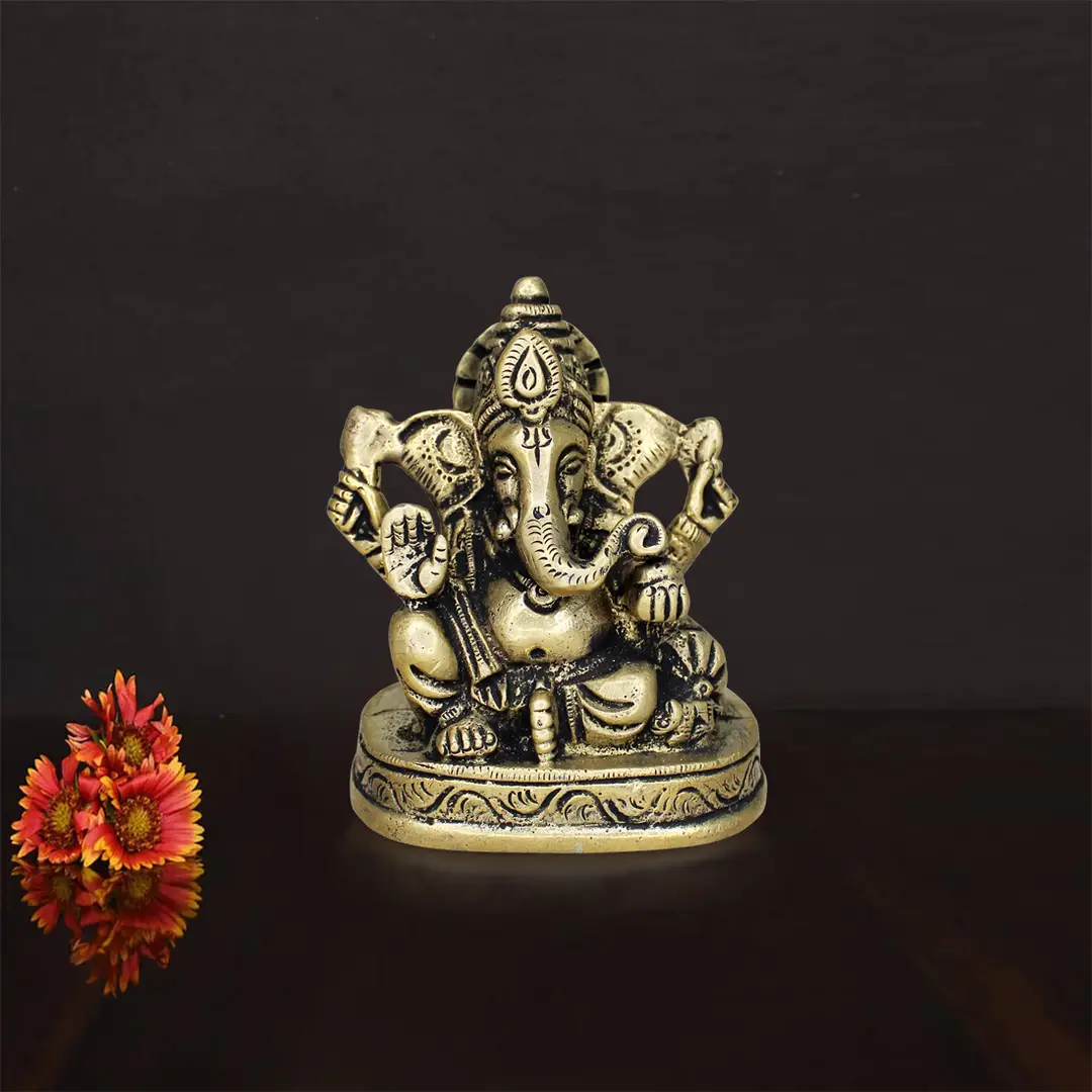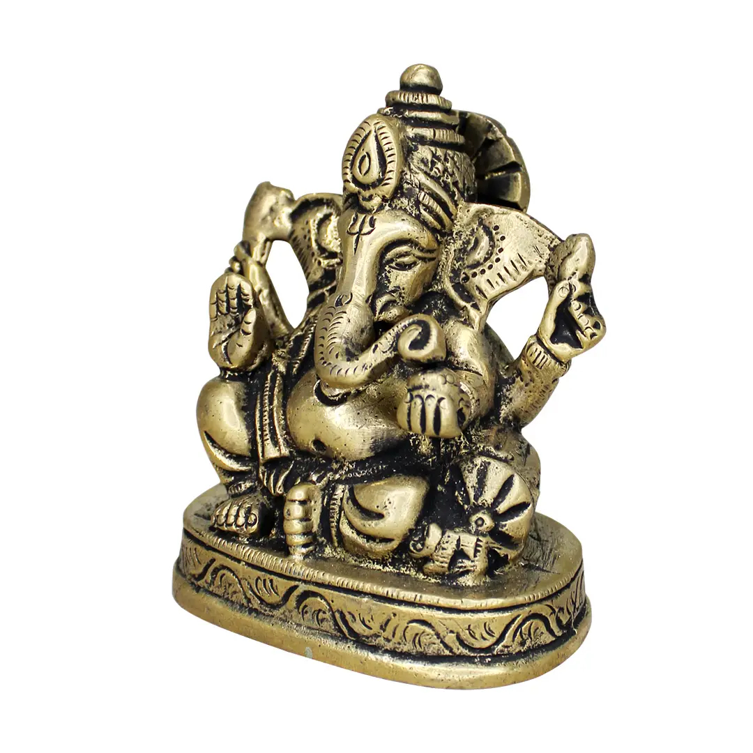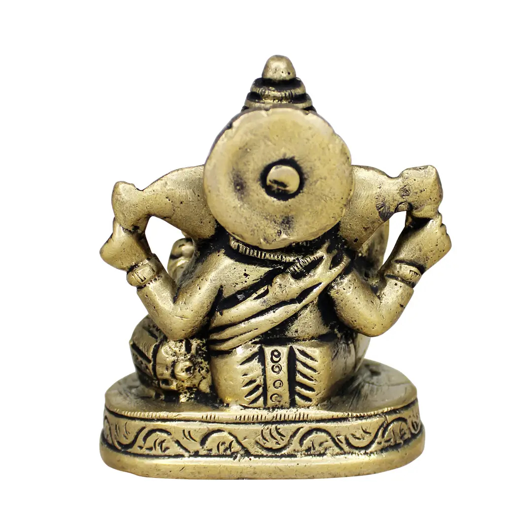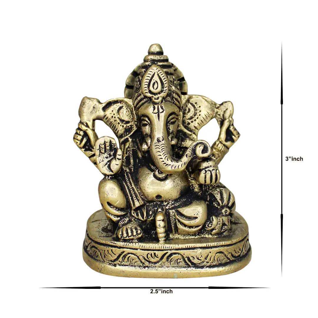 Om BhariPuri Brass Ganesh/Ganesha/Ganesh Ji/Ganpati Bappa Ashtadhatu Idol/Murti/Statue For Home Temple Puja/Pooja, Good Luck, Success And Prosperity (H X W X L :- 3 X 2.5 X 1.5 In, Weight :- 0.382 Kg)