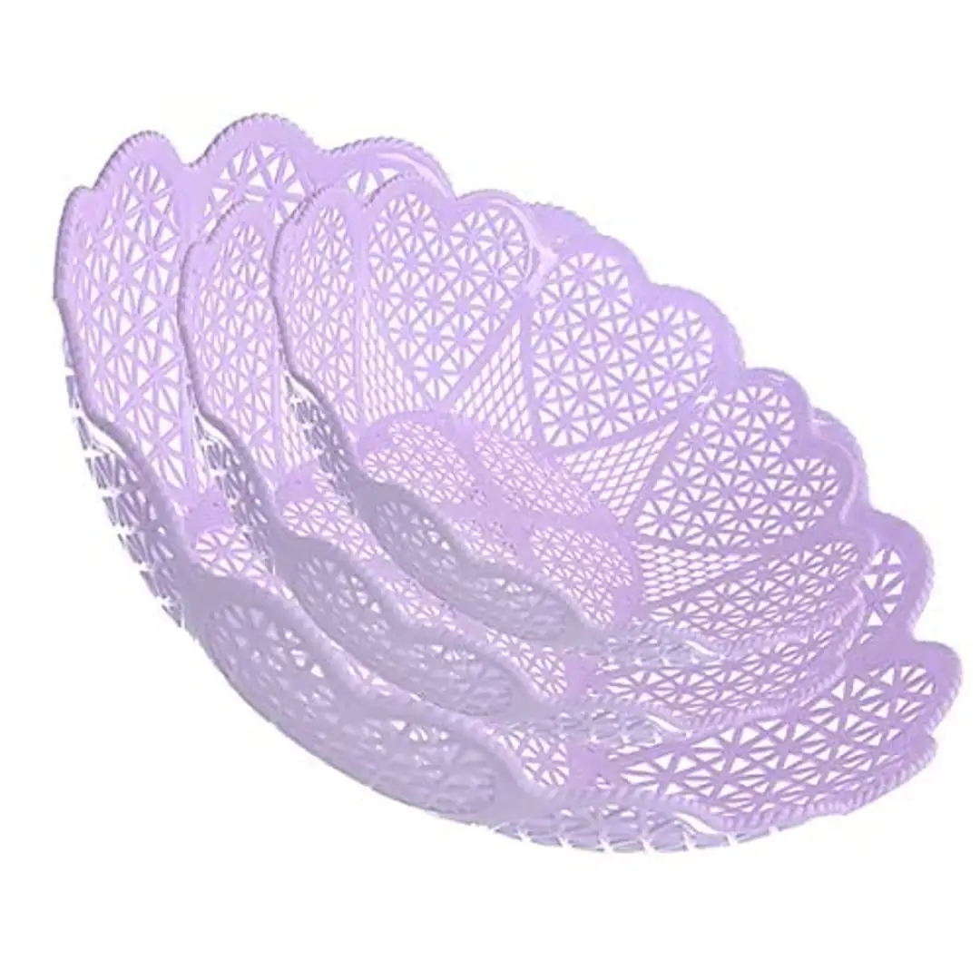 Spatlus Mesh Candy Bowl Fruit And Vegetables Holder For Counters, Kitchen, Countertop Plastic Basket Bowls For Trick Or Treat Hand Grabbing Candy Holder Bowls(Purple, Set Of 3)