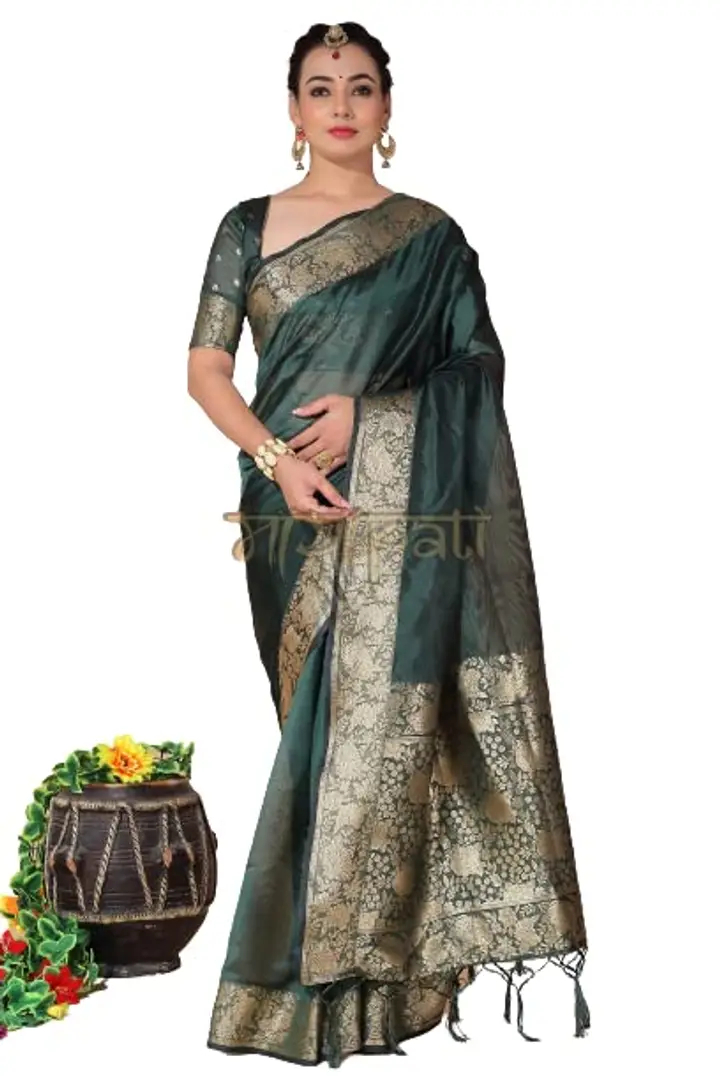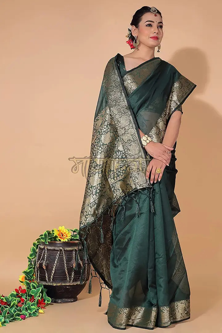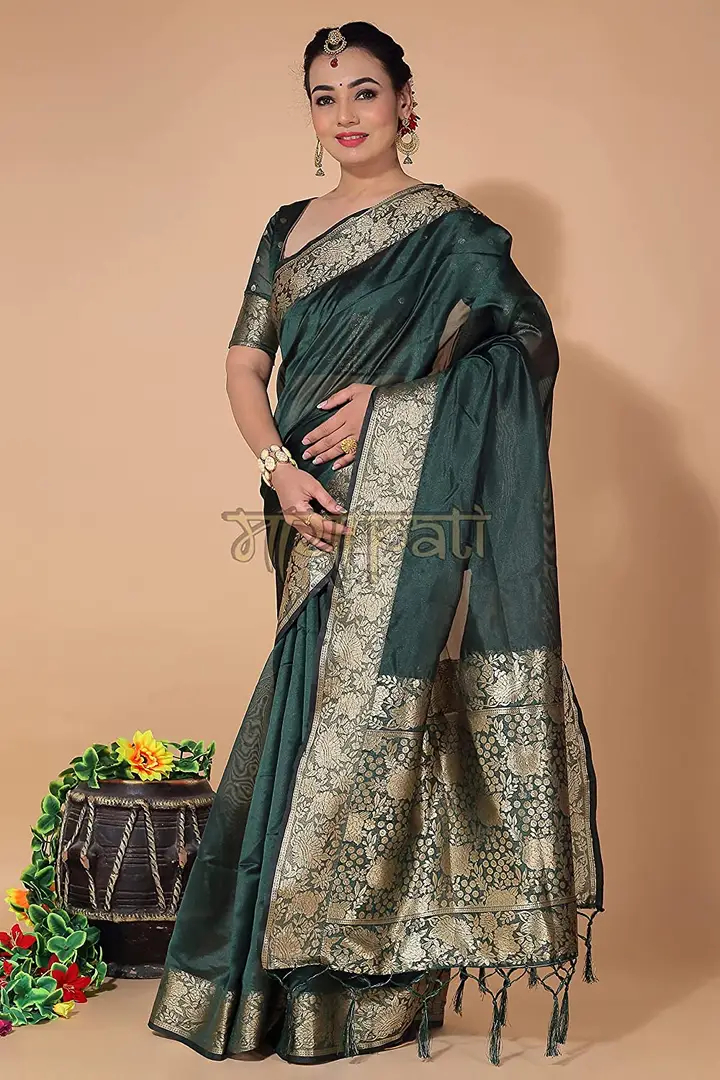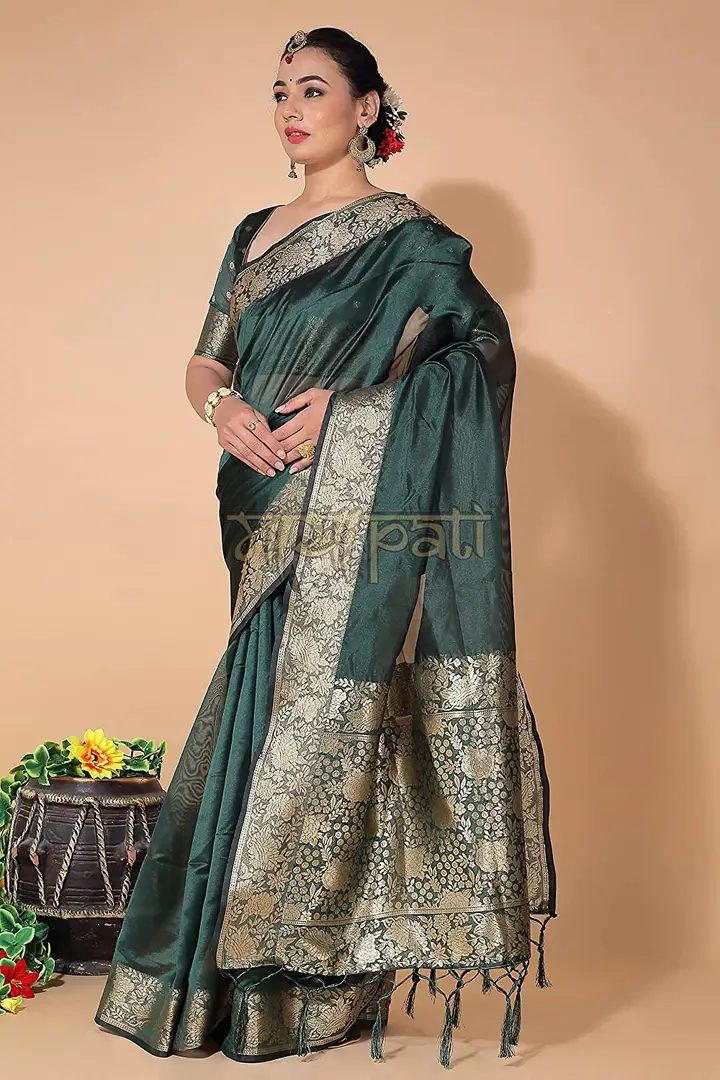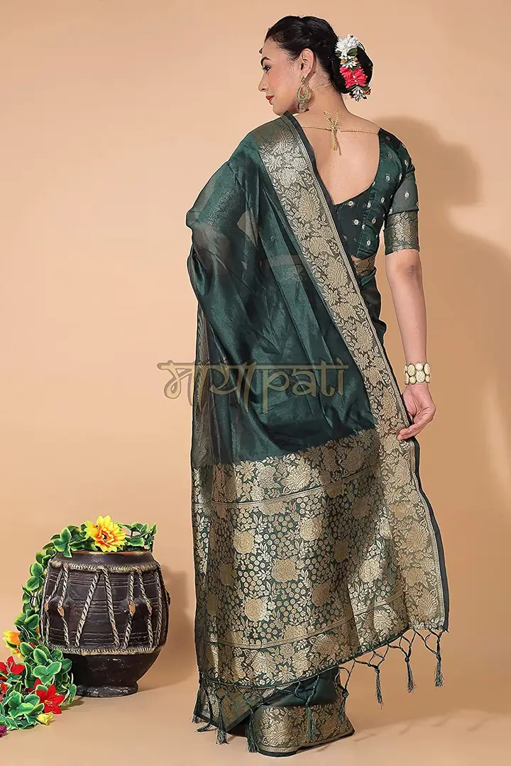 Mayapati Zari Woven Organza Saree|5.5M| For Women With Unstitched Blouse |0.8M| (Dark Green)