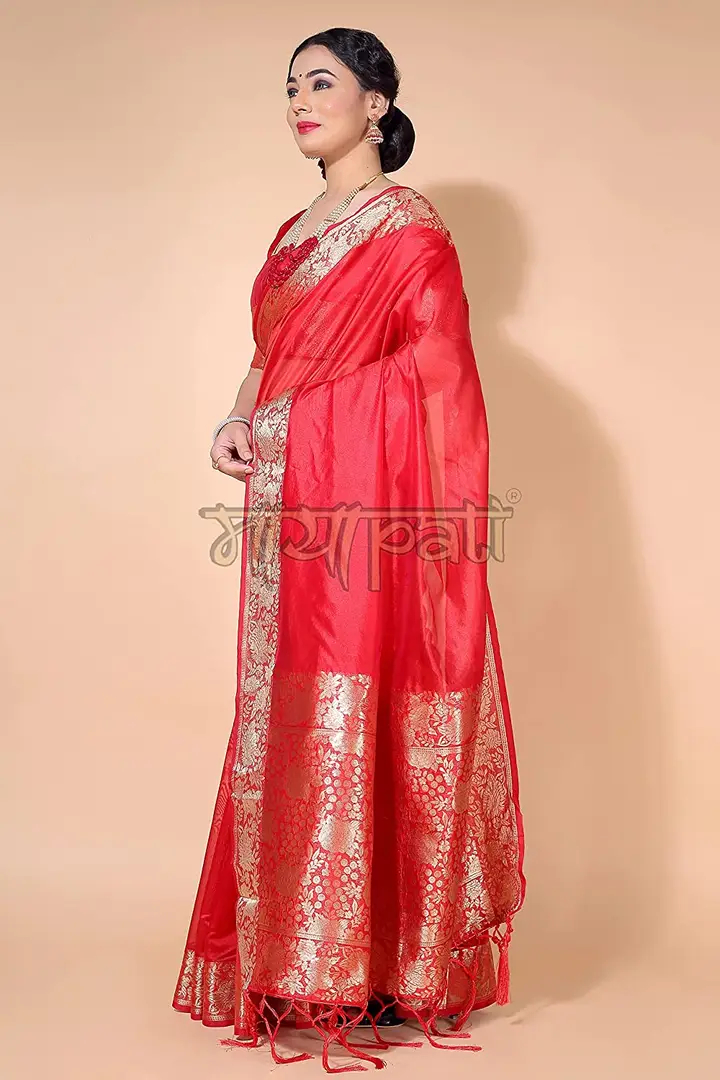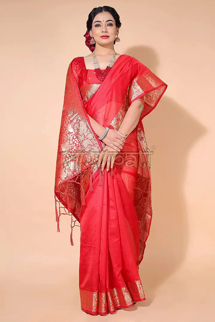 Mayapati Zari Woven Organza Saree|5.5M| For Women With Unstitched Blouse |0.8M| (Orange)