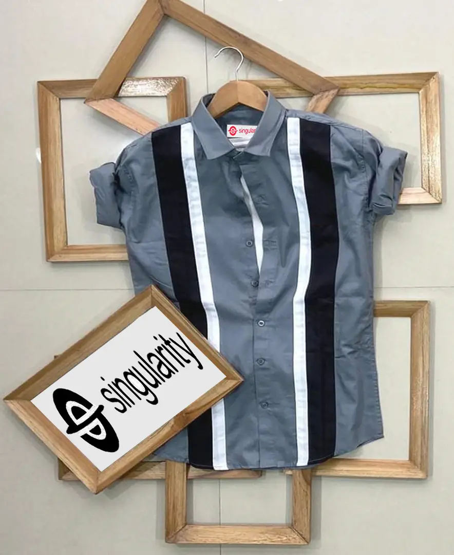 Stylish Grey Cotton Striped Regular Fit Casual Shirt For Men