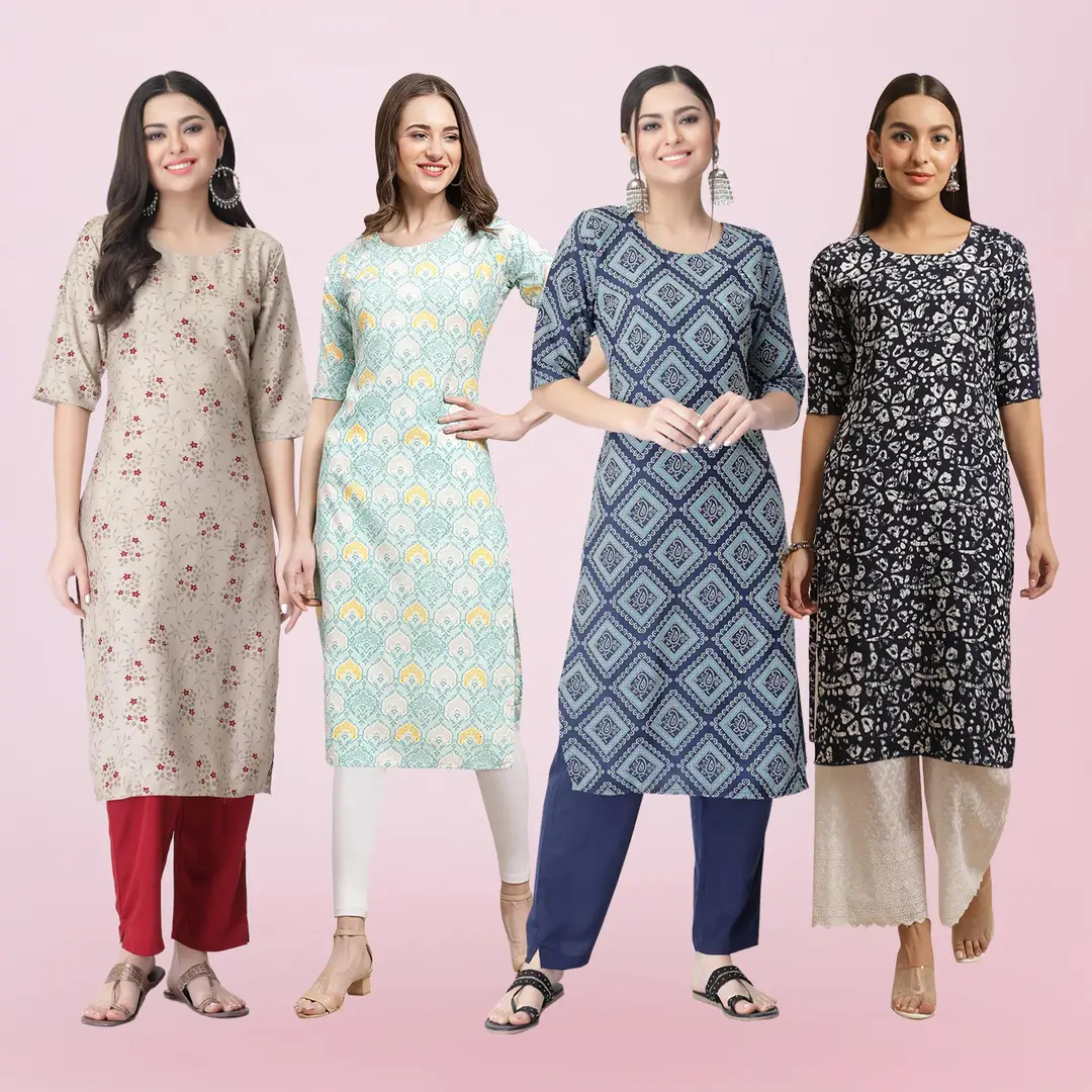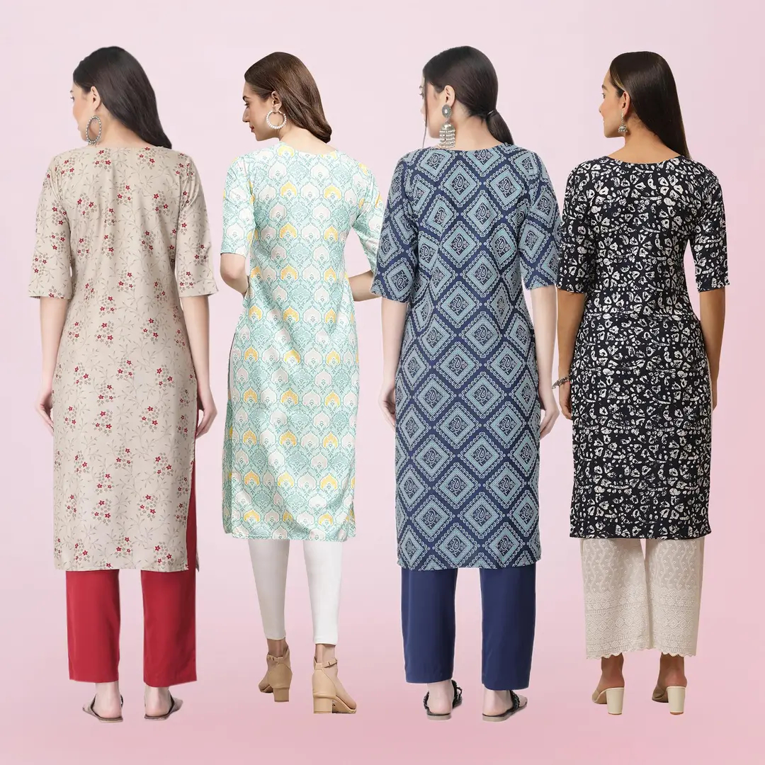 Multicoloured Crepe Ethnic Motif Kurtas For Women