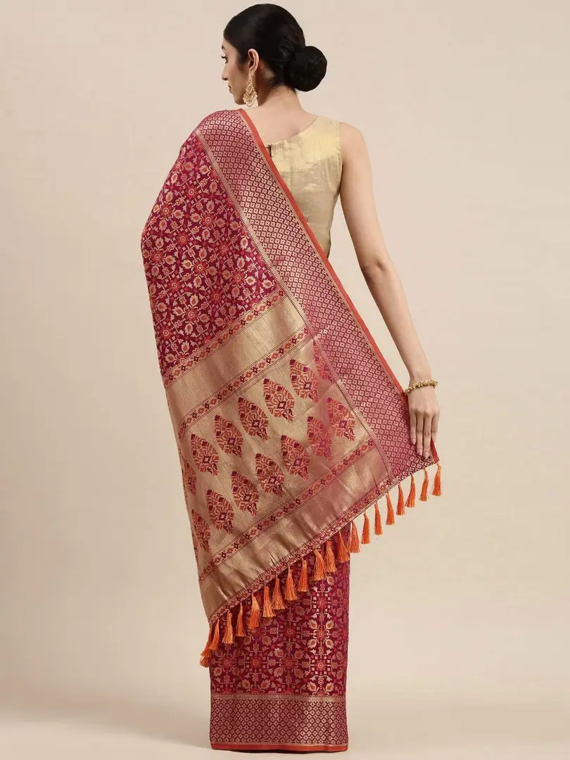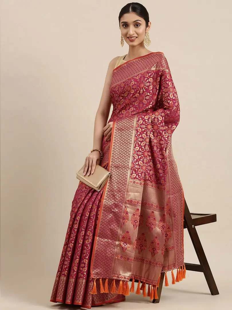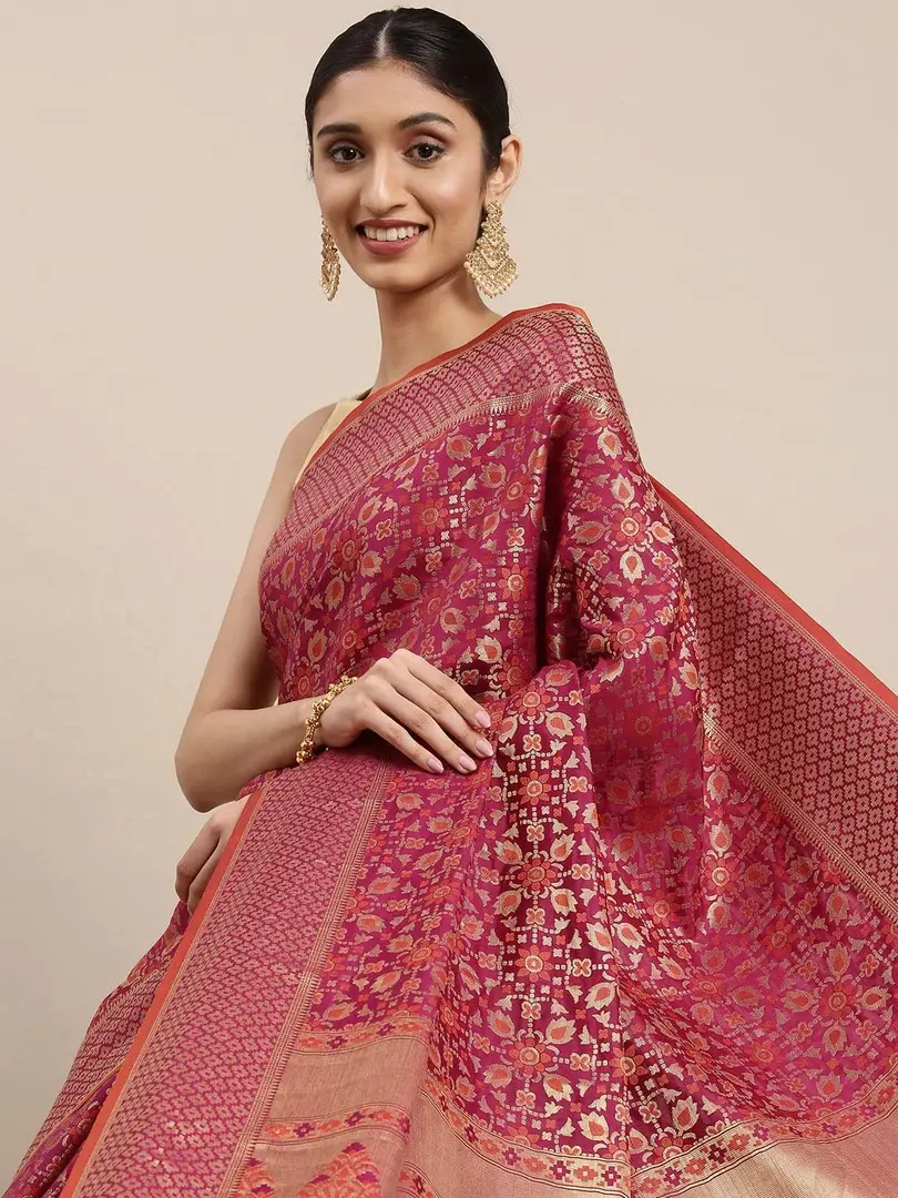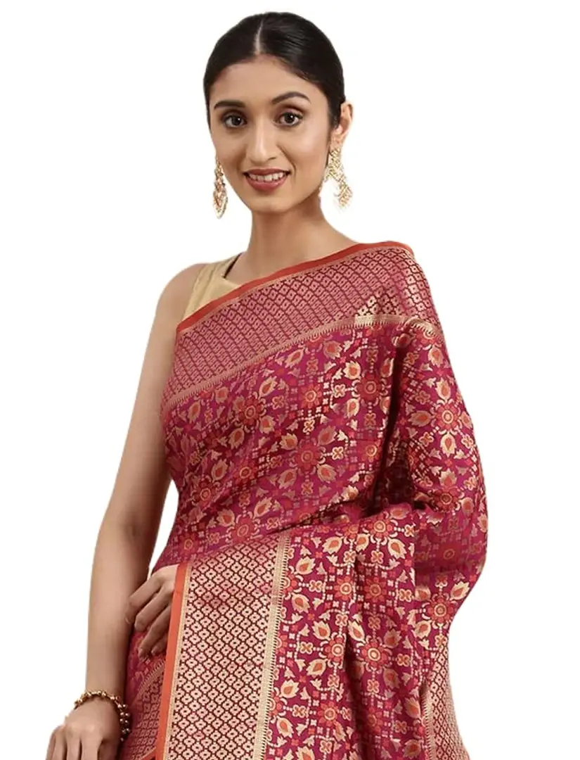 Pandadi Saree Women's Banarasi Silk Patola Saree With Blouse Piece (Purple)