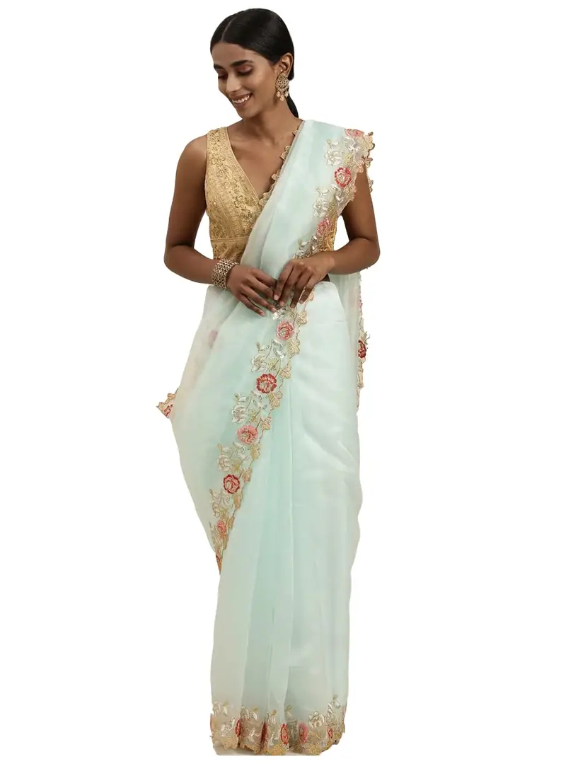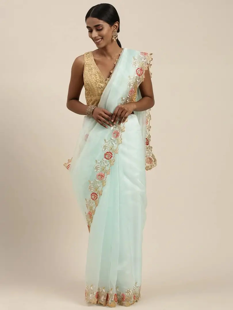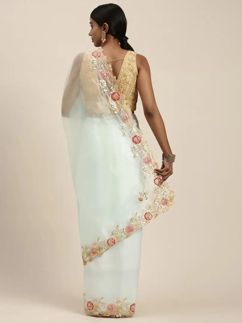 Pandadi Saree Women's Embroidered Organza Saree With Blouse Piece (Sky Blue)